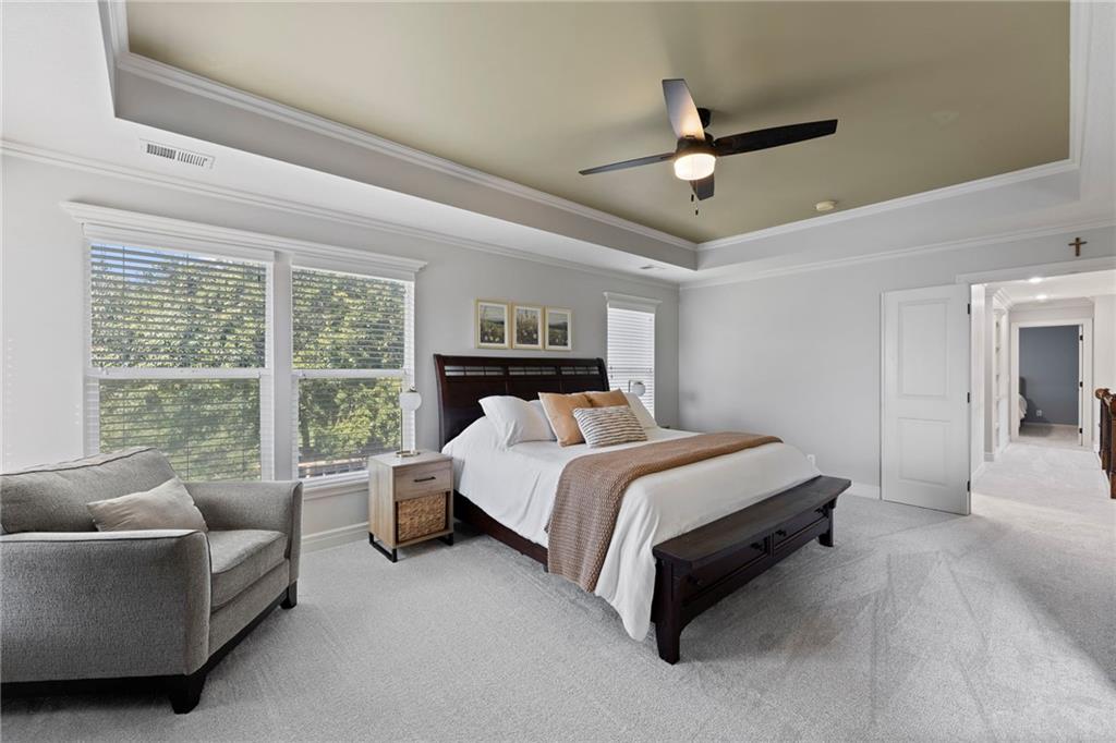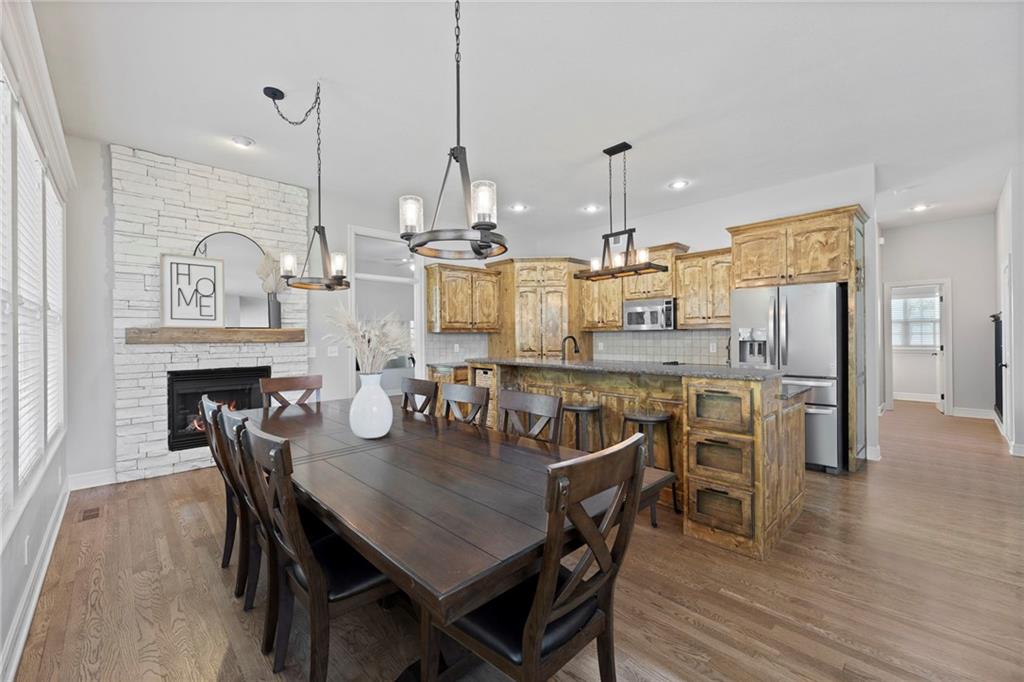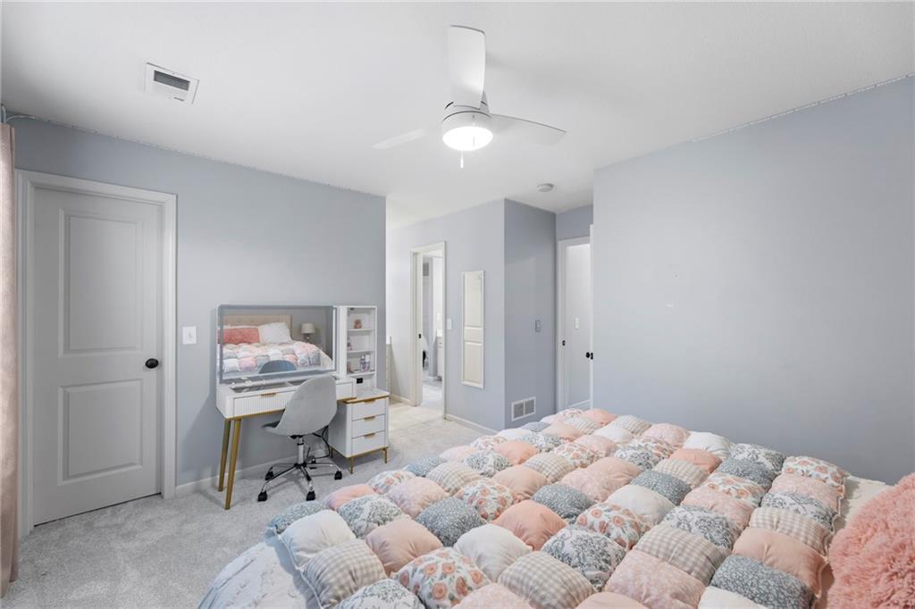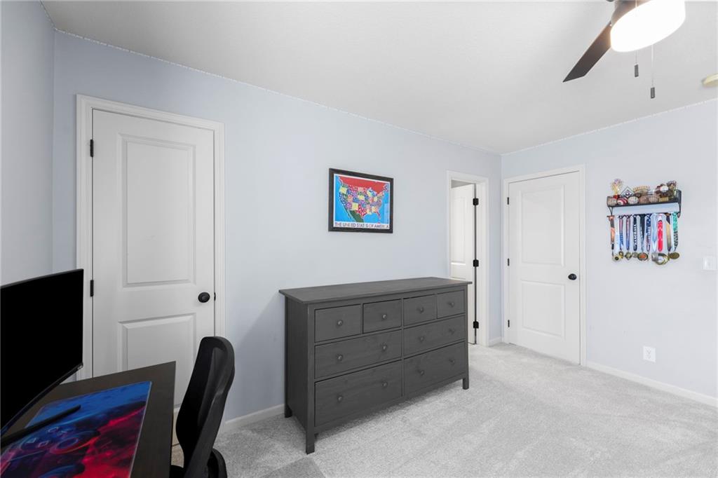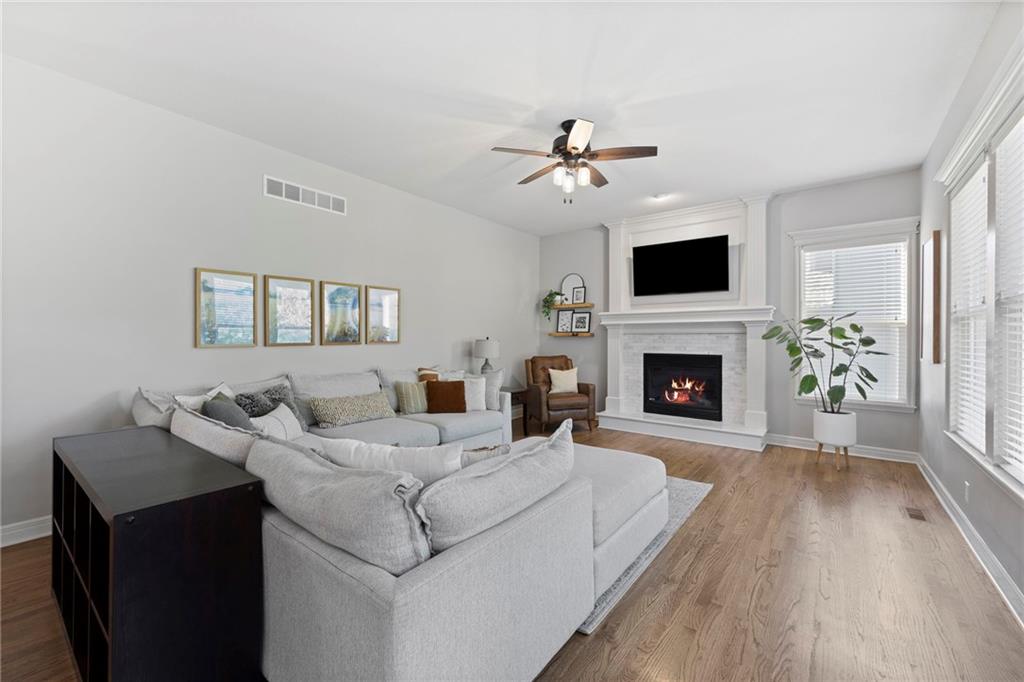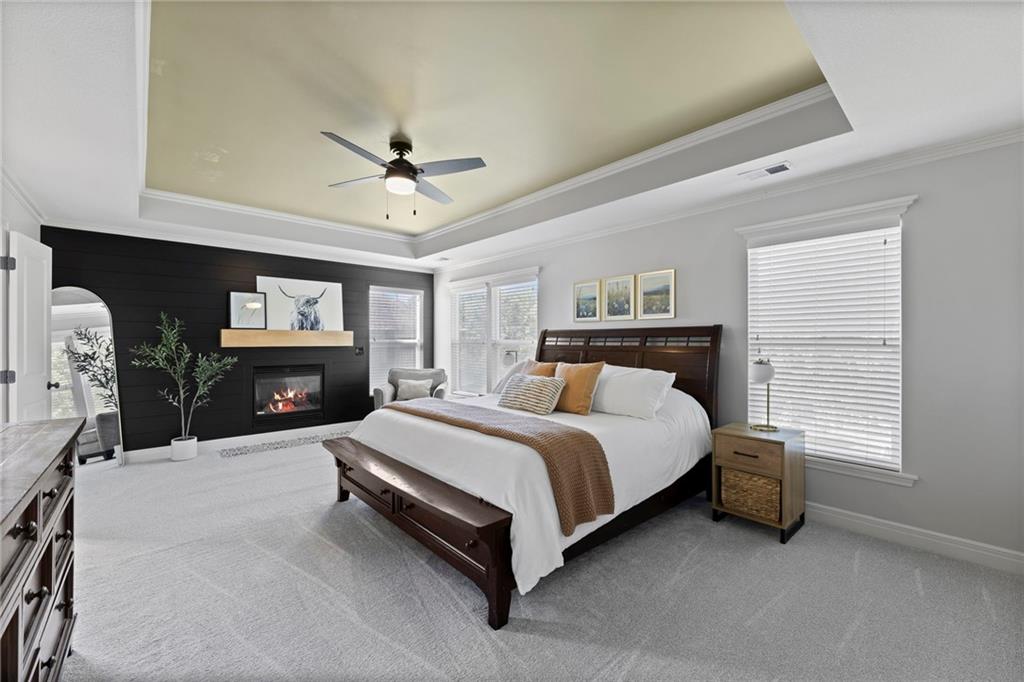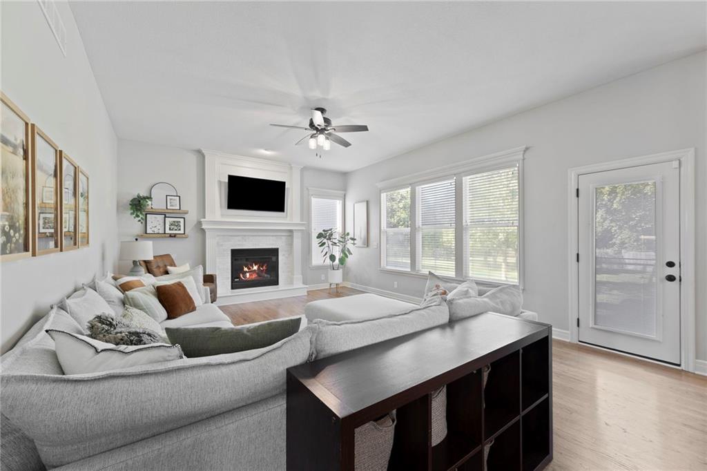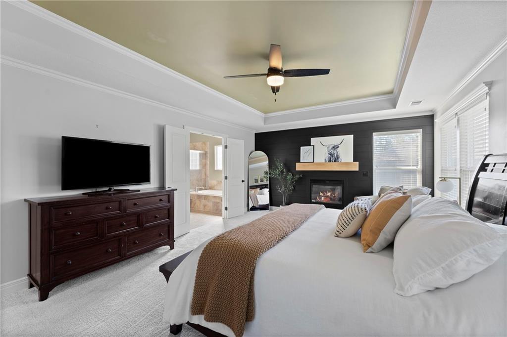 Your First Step Inside Will Make You Want To Call It Home! Pride of Ownership shows with this spectacular home’s spacious versatile living spaces, high soaring ceilings, gleaming hardwood floors, multiple elegant fireplaces and exquisite luxury finishes along with many fabulous updates. This house is the perfect blend of stylish design and thoughtful comfort as it features over 3700 finished square feet that provides an inviting atmosphere for relaxing and entertaining. It boasts an awe-inspiring eat-in kitchen along with gorgeous dining and hearth areas with hardwoods, granite tops, fireplace, lots of stained cabinets, w/i pantry, s/s appliances, kitchen island/breakfast bar, pendant lighting. Impressive living room includes hardwoods, fireplace, wall of windows with lots of natural light, w/o access to 14x15 patio with a peaceful backyard for additional enjoyment. Terrific den/study/office includes french doors and hardwoods. Awesome sitting room and half bathroom all on the main level too! The primary bedroom/bathroom suite showcases an oasis retreat with a marble fireplace, shiplap siding, tray ceiling, carpeting, c/fan along with ceramic tile, d/v, jetted tub, spa-like shower, built-ins, two huge w/i closets. Three roomy secondary bedrooms and two stylish full bathrooms (one en-suite, one jack and jill) for the ultimate convenience and comfort. Finished basement offers family room area and recreation room space plus 5th confirming bedroom. Unfinished basement area with storage/shelving. But wait, there's more as this captivating home also spotlights several fantastic upgrades including new roof/gutters coming soon (2025), new finished basement (Sep 2025), new upstairs carpeting (Sep 2025), tankless HWH (2022), dishwasher, hardwoods in the den/study/office, master bedroom marble fireplace, zoned h/c, sprinkler system, sump pump w/battery backup, amazing curb appeal. Enjoy the Subdivision Swimming Pool and Bain Creek Trail!!