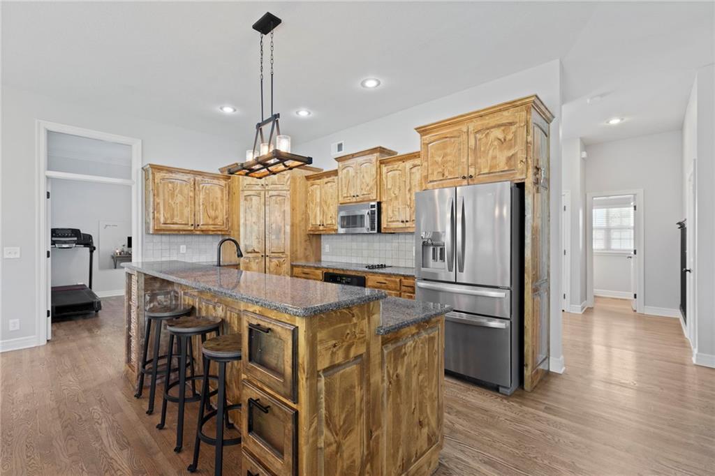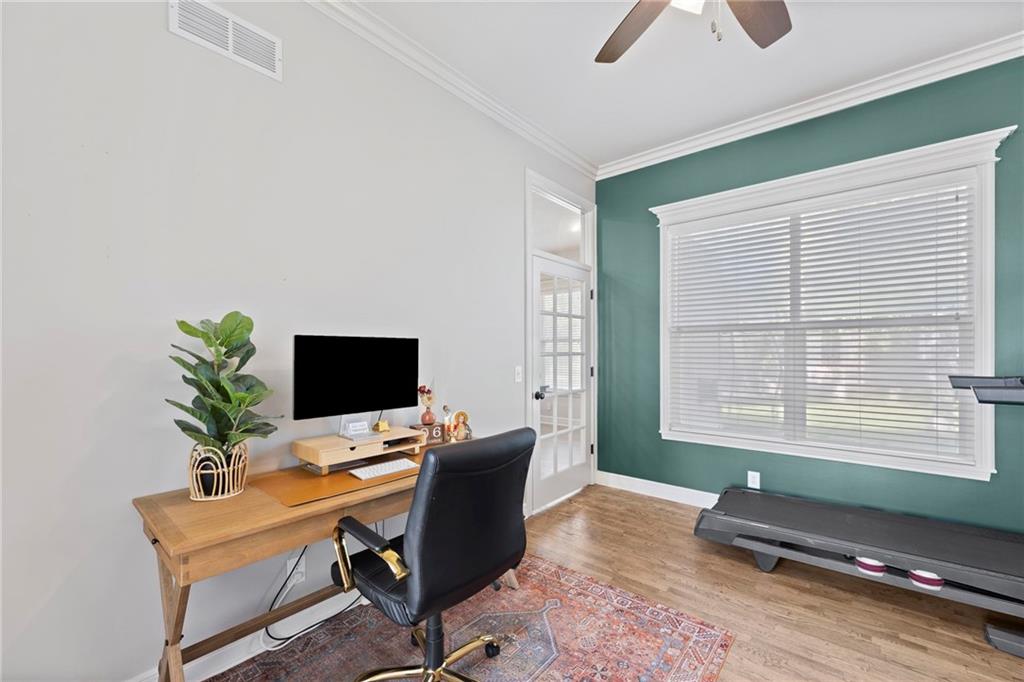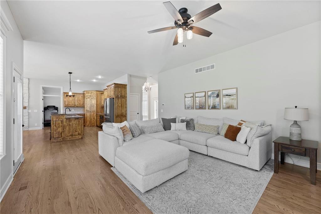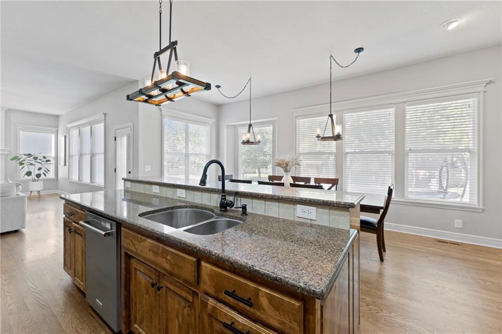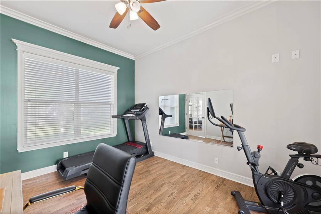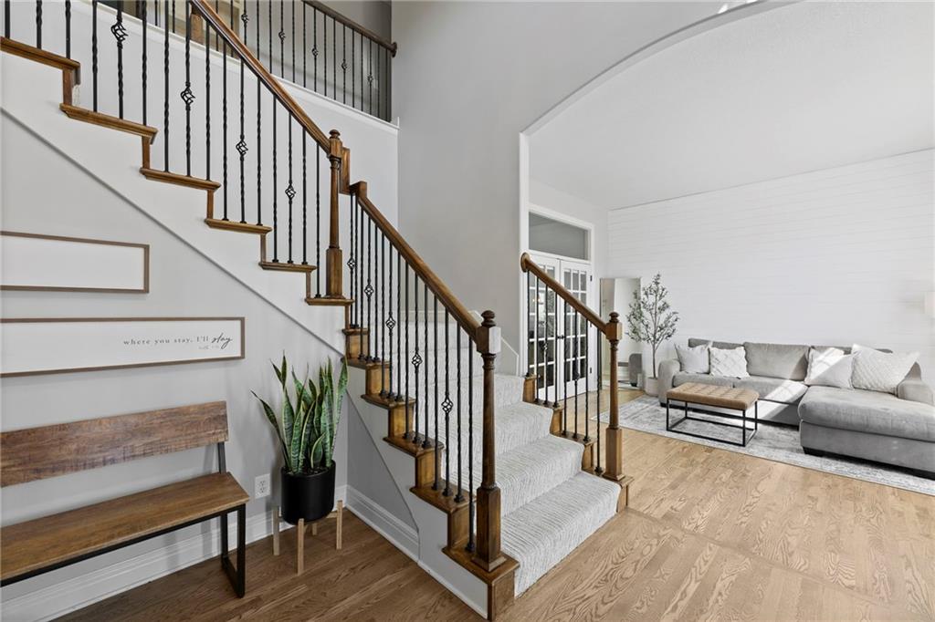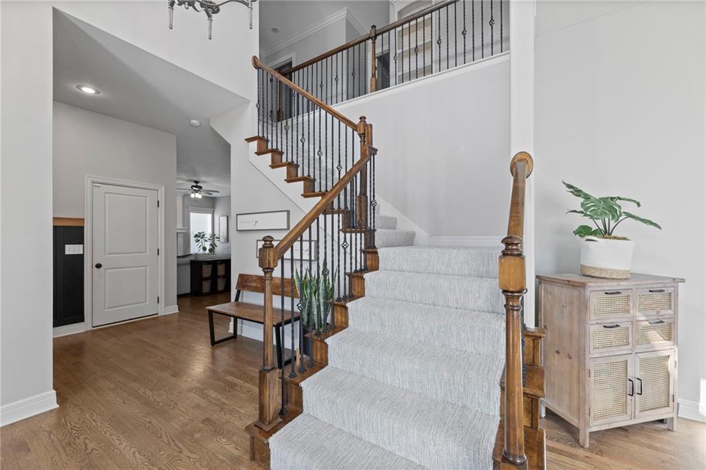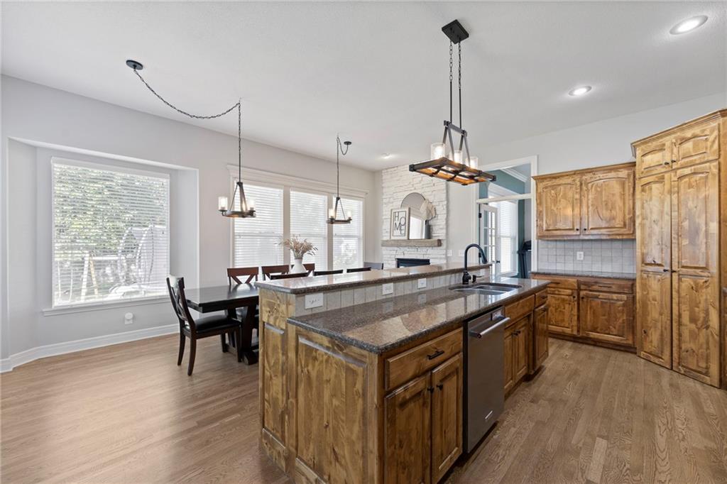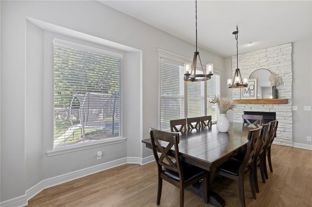 Your First Step Inside Will Make You Want To Call It Home! Pride of Ownership shows with this spectacular home’s spacious versatile living spaces, high soaring ceilings, gleaming hardwood floors, multiple elegant fireplaces and exquisite luxury finishes along with many fabulous updates. This house is the perfect blend of stylish design and thoughtful comfort as it features over 3700 finished square feet that provides an inviting atmosphere for relaxing and entertaining. It boasts an awe-inspiring eat-in kitchen along with gorgeous dining and hearth areas with hardwoods, granite tops, fireplace, lots of stained cabinets, w/i pantry, s/s appliances, kitchen island/breakfast bar, pendant lighting. Impressive living room includes hardwoods, fireplace, wall of windows with lots of natural light, w/o access to 14x15 patio with a peaceful backyard for additional enjoyment. Terrific den/study/office includes french doors and hardwoods. Awesome sitting room and half bathroom all on the main level too! The primary bedroom/bathroom suite showcases an oasis retreat with a marble fireplace, shiplap siding, tray ceiling, carpeting, c/fan along with ceramic tile, d/v, jetted tub, spa-like shower, built-ins, two huge w/i closets. Three roomy secondary bedrooms and two stylish full bathrooms (one en-suite, one jack and jill) for the ultimate convenience and comfort. Finished basement offers family room area and recreation room space plus 5th confirming bedroom. Unfinished basement area with storage/shelving. But wait, there's more as this captivating home also spotlights several fantastic upgrades including new roof/gutters coming soon (2025), new finished basement (Sep 2025), new upstairs carpeting (Sep 2025), tankless HWH (2022), dishwasher, hardwoods in the den/study/office, master bedroom marble fireplace, zoned h/c, sprinkler system, sump pump w/battery backup, amazing curb appeal. Enjoy the Subdivision Swimming Pool and Bain Creek Trail!!