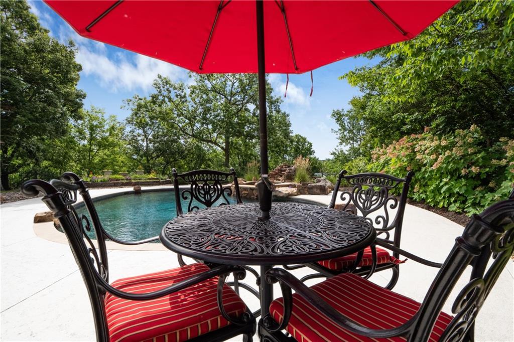 Situated on a private point in the West Shore of Riss Lake, this elegant lakefront residence spans 11,700 sq. ft. on 1.22 acres of beautifully maintained wooded landscape. Nestled within a private gated community, you'll be immediately impressed by the stunning exterior, impeccable circular drive, and custom glass entry. Inside, this meticulously designed home impresses at every turn. From the incredible custom stainless steel and glass staircase to the expansive entertainment area, this home is truly one-of-a-kind. Flooded with natural light, it boasts soaring ceilings and walls of windows. On the main level, you'll find a formal living and dining room, a large office, a separate den, a cozy hearth room, a designer kitchen with Viking and Sub Zero appliances, and a beautiful sunroom with incredible views. The Owner's suite is a retreat filled with special details such as custom ceiling features, a lovely sitting room, expansive closets, a whirlpool tub, and more. The upstairs features a large loft area and three spacious bedrooms, each with private baths and walk-in closets. This home also includes a large gym, a playroom, and a fabulous home theater. For hosting, there’s a full bar and a second kitchen, making entertaining guests an effortless yet elevated experience. Step outside to your own resort-like oasis, featuring a beautiful lagoon-style pool, an outdoor kitchen, and an expansive deck area to entertain or relax and enjoy the lake views. Just off the pool area is an indoor spa room with an attached bathroom and steam shower. The property includes a five-car garage ideal for car enthusiasts, plus a dedicated shop area. Don't miss this rare opportunity to own this masterpiece of craftsmanship located just minutes from MCI Airport, Charles B. Wheeler Airport, downtown KC, and the Plaza. Privacy, luxury, and location at their finest! Taxes and square footage are estimated and should be verified by Buyer's agent.