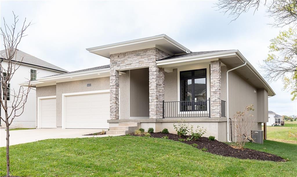 Welcome to Southern Meadows. Overland Parks newest premier community in the highly sought after Blue Valley School district. The Richmond by Gabriel Homes is an award winning 4 Bed 3 bath reverse 1.5 story home with a 3 car garage on a daylight lot backing to greenspace. MOVE IN READY! This home sits on lot 108 and features a modern yet timeless contemporary exterior and all of the finishes you have come to love. Natural lighting fills the home with oversized windows in the great room. Enjoy your high-end kitchen features quartz counters, expanded kitchen island, custom hood, under cabinet lighting and to die for walk in pantry. Enjoy evening sunsets on your covered deck located off the breakfast room. Main floor features both primary and 2nd bedroom. Fantastic and functional layout. Enjoy the large finished basement features 2 additional bedrooms, oversized rec room, and natural lighting. This home sits on a fantastic oversized lot with incredible views.