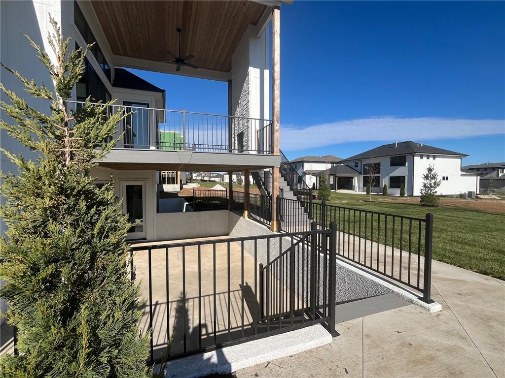 READY!! You'll love this sought after Gunnison REVERSE by JFE HOMES with a X-Large sunken patio on Lot #182 in a private cul-de-sac. This ideal floor plan is a popular one with spacious main floor living at just over 2000 square feet on the main floor and a full finished walkout lower level for a total of 3596 finished square feet of living space. BONUS WASHER AND DRYER already installed by the BUILDER! SO many extra features in this home like the pocket office, elegant glass doors in the kitchen, large prep pantry, free standing tub, pull down bars in primary closet. This beautiful home is an award winning plan and loaded with upgraded features at this price. The BRAND NEW modern look includes extra windows, vertical wood accent posts with real stone trim. Built on a walkout/up lot with an AMAZING OUTDOOR sunken patio. MUST SEE! This home also features a covered deck with fireplace, double sliders that open from the great room providing plenty of light, a large great room with high ceilings and an oversized kitchen with island prep style walk in pantry. The perfect walkout lower level is finished and has a spacious living room with wet bar, TV accent wall, and two additional bedrooms and a fitness room. Still plenty of room for basement storage. Century Farms has a spectacular club house with a farmhouse twist ideal for neighborhood gatherings or private parties. It features a small prep area, fireplace, pub tables, reading loft and a fitness center. Large resort style swimming pool. There are plenty of neighborhood activities with a fire-pit, two pickle-ball courts and a basketball hoop, farm themed animal kids play area, wildflower walkways and a community garden. Century Farms is conveniently located near the brand new Bluhawk shopping center, Heritage Park, the Johnson County Trail system and the Overland Park Arboretum. Come join the fun in Century Farms, a unique one of a kind upscale new home community in Overland Park. BLUE VALLEY SCHOOLS
