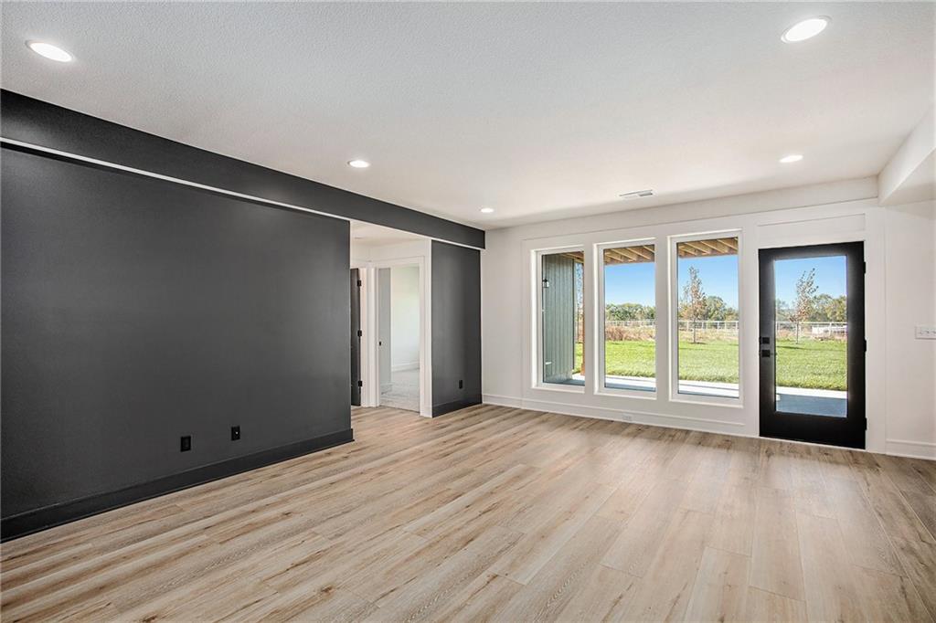 MOVE IN READY -- "The Bayberry I" by JFE Construction located on Lot 90 is a 4 bed, 3 bath Reverse 1 ½ Story. From the moment you walk-thru the 8' double doors you will be amazed. The great room with a vaulted ceiling, floor to ceiling fireplace, and a wall of windows provides a spacious open feeling. Large slider doors from the great room expands your entertainment space to the covered deck w/stone fireplace. Kitchen boasts a large island with quartz tops, stainless appliances, and a large pantry with built in coffee bar. Primary ensuite includes a free-standing soaker tub, double bowl vanity, zero entry shower and walk-in closet. 2nd bedroom or office on the main. The finished lower level includes a family room, wet bar with island, and 2 additional bedrooms and a full bath. Minutes from Blue Valley K-12 schools. Photos include a rendering of the Bayberry. The final home may vary. Any additional photos show the current state of the actual home. Taxes are estimated. Models Open Daily, 11 am – 5pm, and Sunday, 12-5pm. Visit the sales office at 12411 W 183rd Terrace, Overland Park. THIS HOME IS MOVE IN READY.