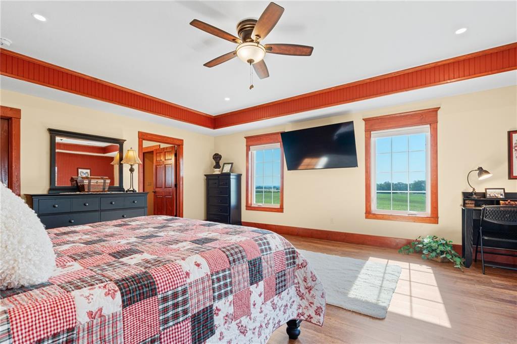 A Country Dream on 74+ Acres in Northwest Missouri! Looking for the perfect mix of wide-open spaces, modern comfort, and a dash of adventure? This stunning estate is just 1¼ hours northeast of Kansas City—and it’s a showstopper! Perfectly tucked between Gallatin, Jameson, and the historic Adam-ondi-Ahman site, it’s where beauty meets functionality and peace meets play. At the heart is a spacious 4,720 sq ft home that checks every box. The main floor boasts three private bedroom suites (yes—each has its own bath!), including an oversized primary retreat. The open-concept living, kitchen, and dining area is designed for gathering and memory-making. Upstairs is a 1,440 sq ft apartment—complete with kitchen, laundry, master suite, a 10-bed bunk room (sleepovers, anyone?), plus a huge storage room. Even the 1,647 sq ft heated three-car garage is ready for cars, toys, tools, or hobbies. In-floor heating zoned for the house and garage, a propane furnace, on-demand water heaters, and an Amish cookstove ensure warmth and efficiency year-round. Outside, a 70'x80' outbuilding includes a 588 sq ft energy-efficient studio apartment with Murphy bed, full bath, and kitchen with pantry. The same building offers two more bedrooms, another full bath, laundry, a workshop, and an impressive multipurpose room w/ a PICKLEBALL court (yes, really!)—plus space for animals or equipment. A second 40'x50' barn is fully insulated with concrete floors for all your projects and passions. For outdoor lovers, there’s a 3-acre stocked pond, nearby Grand River, 46 acres of tillable ground providing crop income (currently soybeans, hay/alfalfa), and abundant wildlife—deer, turkey, quail, and more. Whether farming, fishing, riding horses, or simply soaking in sunsets, this property delivers. This isn’t just real estate—it’s a lifestyle. A peaceful retreat in the heartland where you can work, play, and truly live.