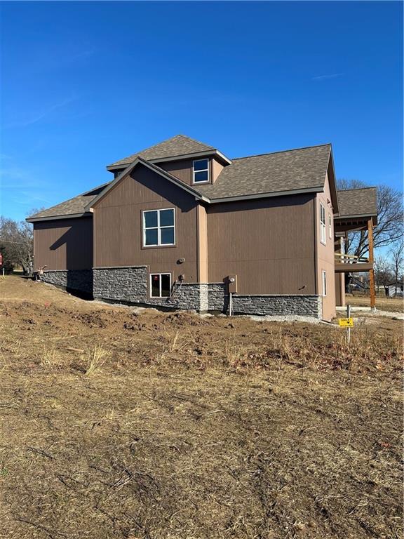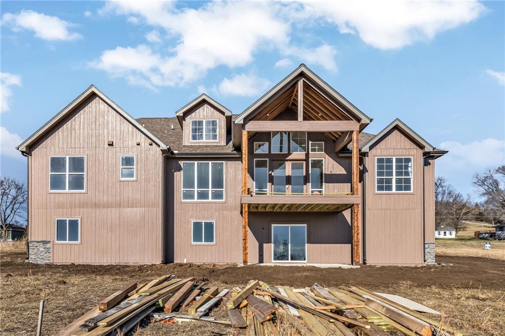 This luxury custom craftsman-style home is thoughtfully designed for elegance and refined everyday living. The free-flowing layout is positioned on an elevated .77-acre lot, offering views of the surrounding bluffs. The main level spans over 3,000 square feet and showcases oak floor in the main area, a chef’s dream kitchen appointed with premium Viking appliances, connecting to a dramatic vaulted great room anchored by a grand fireplace that truly embodies classic craftsman-style character. The home also features a formal dining room and an inviting eating nook. The primary suite provides a serene retreat, while three additional bedrooms and three full bathrooms. A fifth bedroom on the upper level offers a quiet, private space—ideal for a home office, guest room. Exquisite craftsmanship is evident throughout, highlighted by tongue-and-groove ceilings that flow from the grand entry through the vaulted great room and extend onto the expansive covered deck, supported by stunning cedar beams. The home also includes an additional 2,735-square-foot walkout basement with a covered patio, stubbed for a second kitchen and 2.5 bathrooms, offering options for multiple bedrooms, a private guest suite, or multi-generational living. There is an option to fully finish the basement to suit your lifestyle. Outdoor living is elevated with both a covered front porch and covered rear deck, perfect for entertaining or enjoying peaceful views. This lot allows for endless possibilities, including a luxury pool, outbuilding, or custom outdoor entertaining space. An oversized three-car garage and extended driveway provide ample off-street parking. Ideally located with convenient access to the Kansas City metro area and Fort Leavenworth, this property delivers luxury, privacy, and accessibility in a truly exceptional setting.