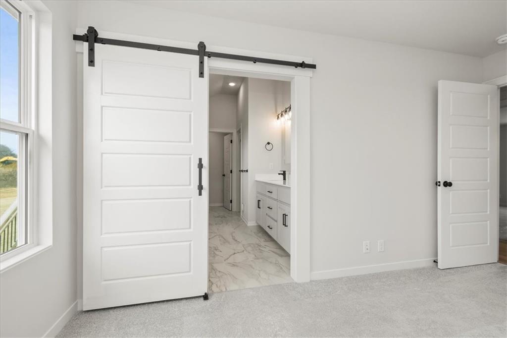 Popular Front to Back Split in Eagles Creek of Blue Springs! Close to completion - come and see the massive quartz island and well designed kitchen! Amazing master suite and large open spaces. Main floor laundry. Huge 3 car garage!