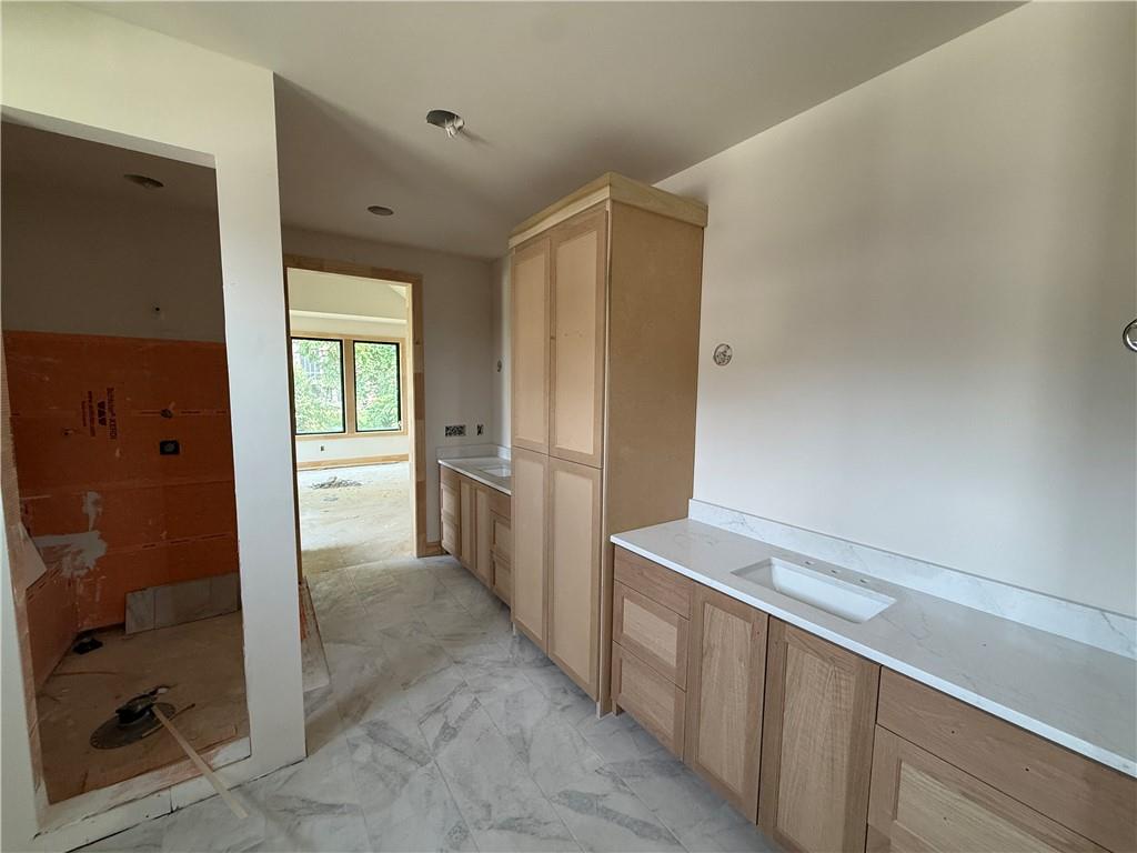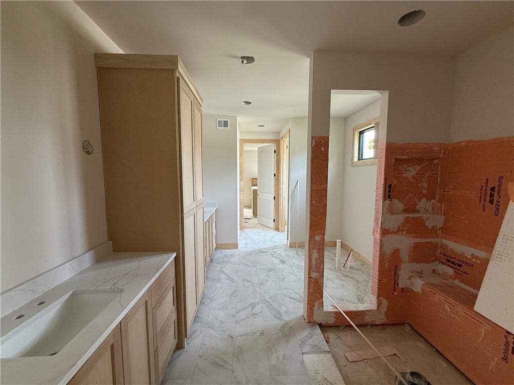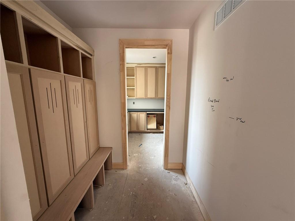 LOT 71: Discover another stunning home by Fieldstone Homes - a one-and-a-half story floor plan featuring the primary suite and a second bedroom conveniently located on the main level. The home welcomes you with a grand double-door entry and a vaulted ceiling in the foyer, setting the tone for the spacious design throughout. The large living room boasts soaring ceilings, a cozy fireplace, and built-in shelving, creating an inviting atmosphere. The open-concept kitchen is bright and airy, featuring a generous island with an integrated sink, a separate cooking area with a cooktop and oven, and a nearby dining space perfect for gatherings. A covered lanai sits on a concrete patio slab, extending your living space outdoors. A standout feature is the spacious pantry and kitchen prep area, which includes a second oven and connects to the mudroom via a convenient pocket door - ideal for unloading groceries from the four-car garage. The mudroom includes built-in shelving, a bench with lockers, and a coat closet. The luxurious primary suite is located on the left side of the home and includes a massive walk-in closet with built-in shelving, drawers, and cabinetry. The en-suite bath features a glass-enclosed shower, a separate soaking tub, and dual vanities. Also, there's a laundry room conveniently located on both the main and 2nd levels. The second bedroom, located on the opposite side of the main level, offers its own private bath and a generous closet. A stylish powder bath is also situated on the main level. Upstairs, you'll find three spacious bedrooms, each with their own private bath and walk-in closet. This beautiful home is currently framed with an October 1, 2025 estimated completion. You're going to love it!