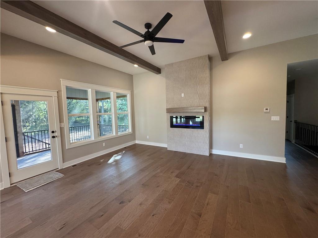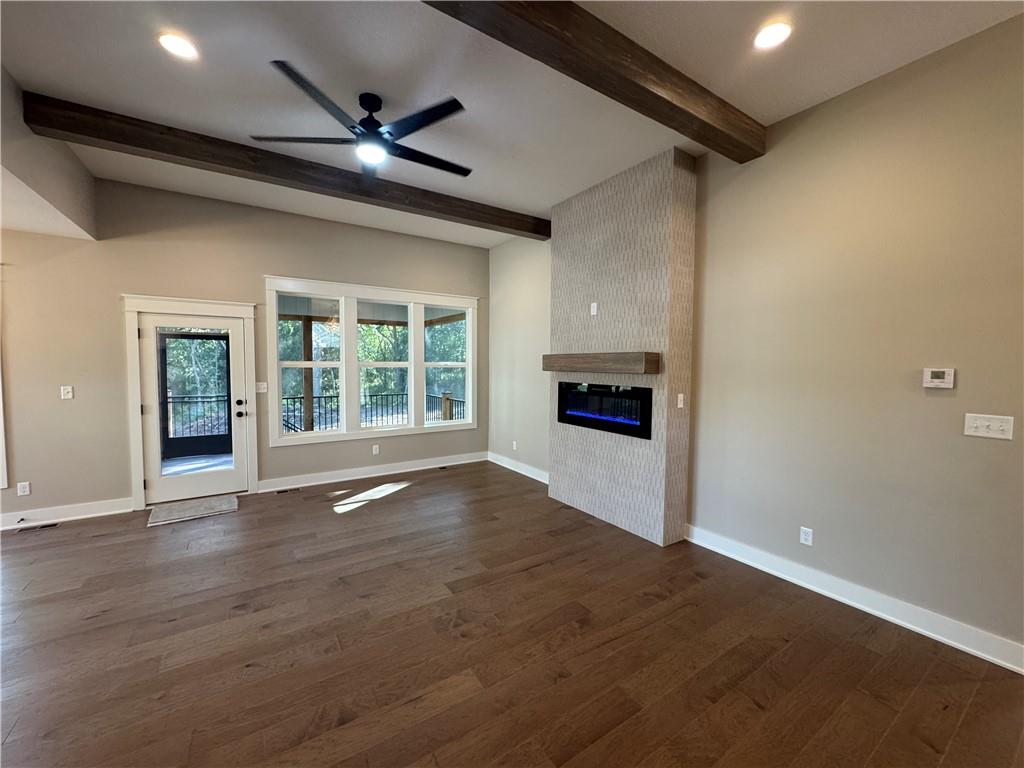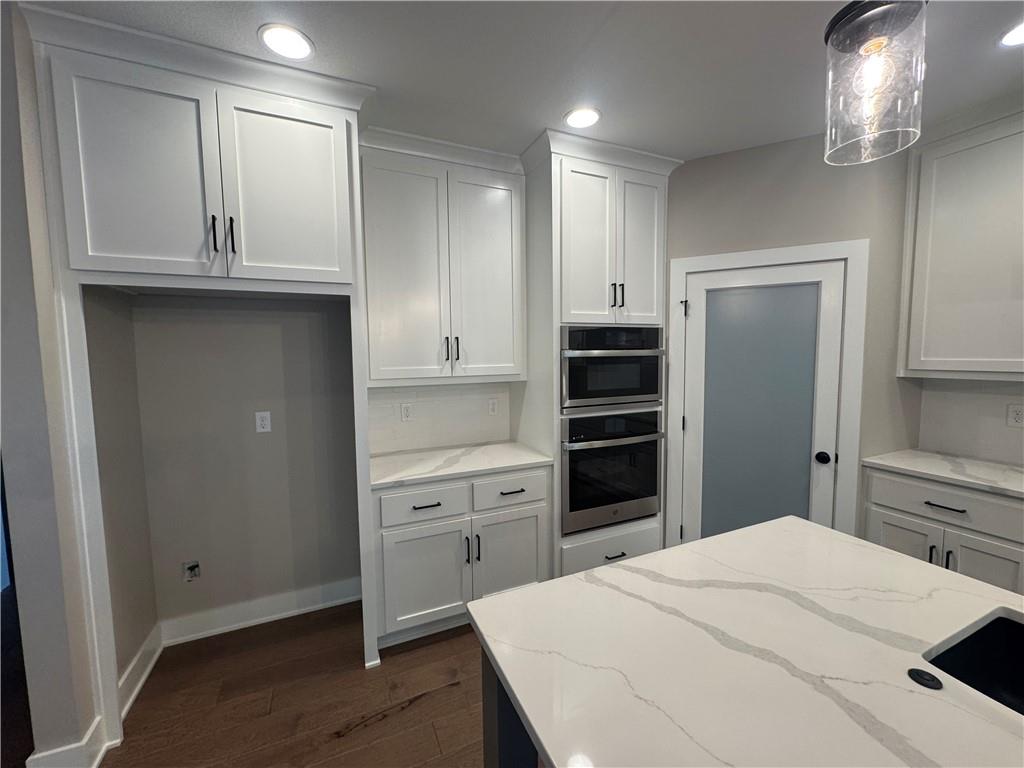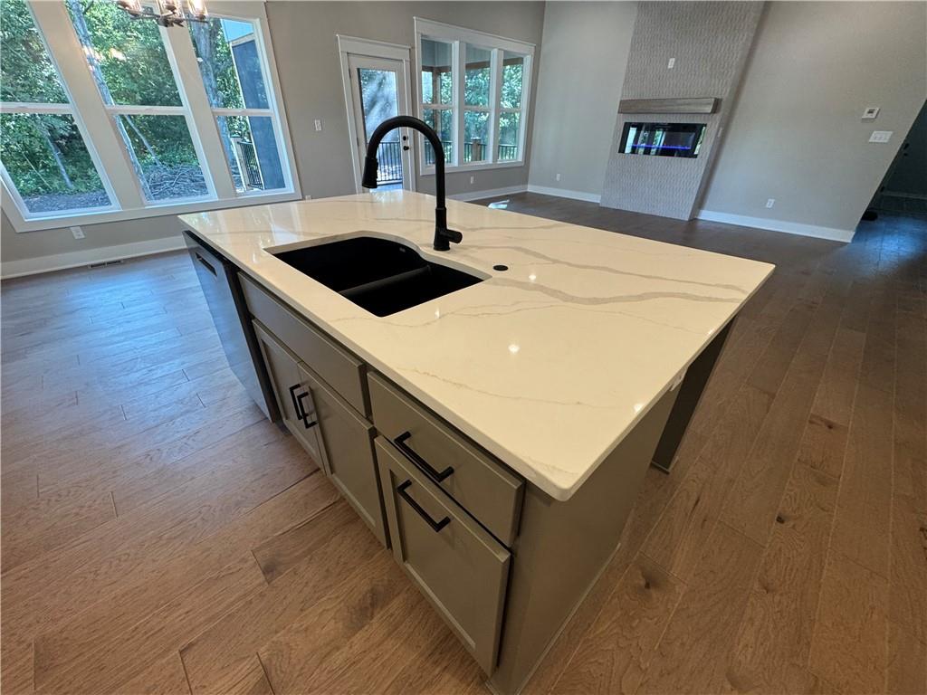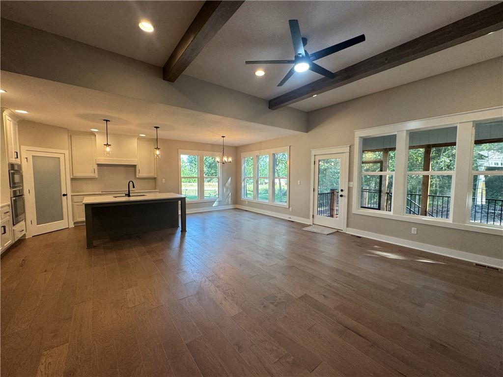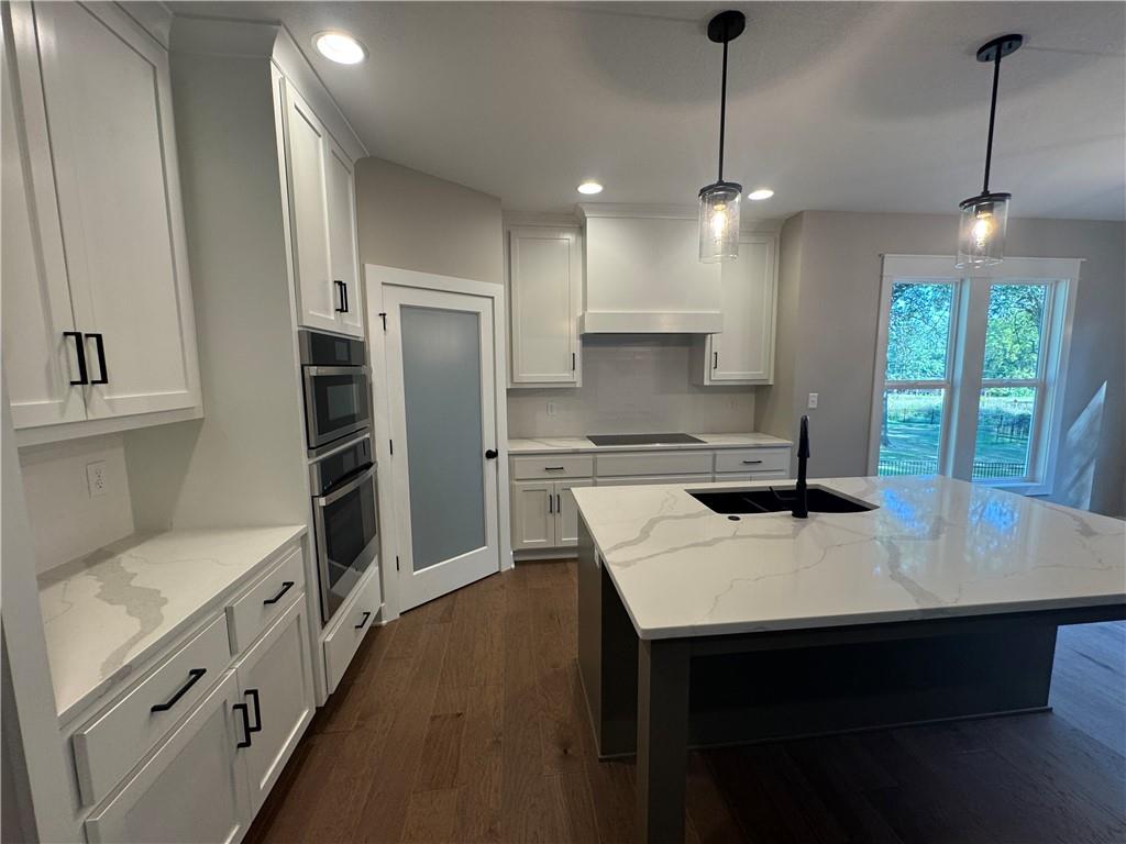 Don’t miss this brand-new ranch-style home, set on a spacious, lot! The open kitchen features painted custom cabinets, quartz countertops, pantry, large island with breakfast bar, and upgraded appliances—including built-in oven, convection oven, oversized cooktop with downdraft, and dishwasher. The living room offers 12-foot ceilings, a floor-to-ceiling tile fireplace, and large windows for natural light. The primary suite includes a tiled shower, double sinks, and walk-in closet. Enjoy main floor laundry and a screened-in covered deck with stairs to the backyard. The full unfinished basement has egress windows and is stubbed for a bath. Energy-efficient HVAC w/ humidifier and irrigation system included.