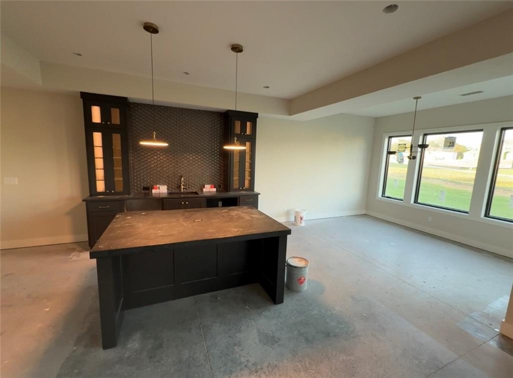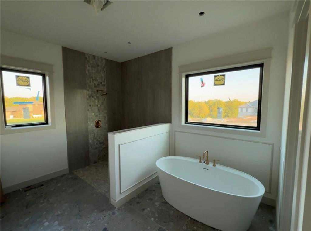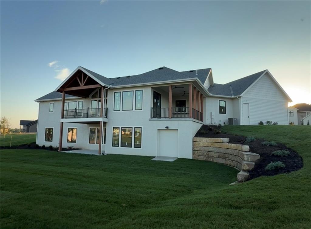 Experience luxury living in this stunning Reverse 1.5 Story home, nestled on a sprawling 1.04-acre estate lot. Enjoy a spacious layout with 4 bedrooms, 4 full baths, 2 half baths, and an oversized 3-car suspended garage. Premium features include Pella Impervia windows, 8' interior doors, and a luxury appliance package. Entertain effortlessly in the walkout lower level, complete with a speakeasy/wine room and wet bar, or relax on the suspended patio. Convenience is key with a main-level office, a coffee station & 2nd fridge in oversized pantry, and a laundry sink station. The home also includes a high-capacity 400A service (for possible future pool) and features engineered wood flooring on the main level and LVP in the lower level, Entry & Great Room are graced with cathedral vaulted ceilings. Main Level Primary Suite and ALL bedrooms have private bath & walk in closet.