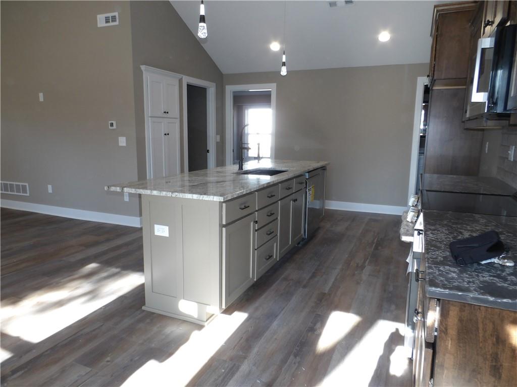 Beautiful New Construction. Look at all the Details this Home Has. Vaulted Ceilings in the Living Room, Kitchen & Bedrooms. Custom Stained Knotty Alder Cabinets, Oversized Island with sink and dishwasher, Granite through-out Kitchen and Bathrooms. Covered Front Porch. Luxury Vinyl Plank flooring, Frieze Carpet, Stainless Steel Appliances. Quality Built 3 Bedroom, 2 Bath and 2 Car Garage Home.... Nice & Open!!!