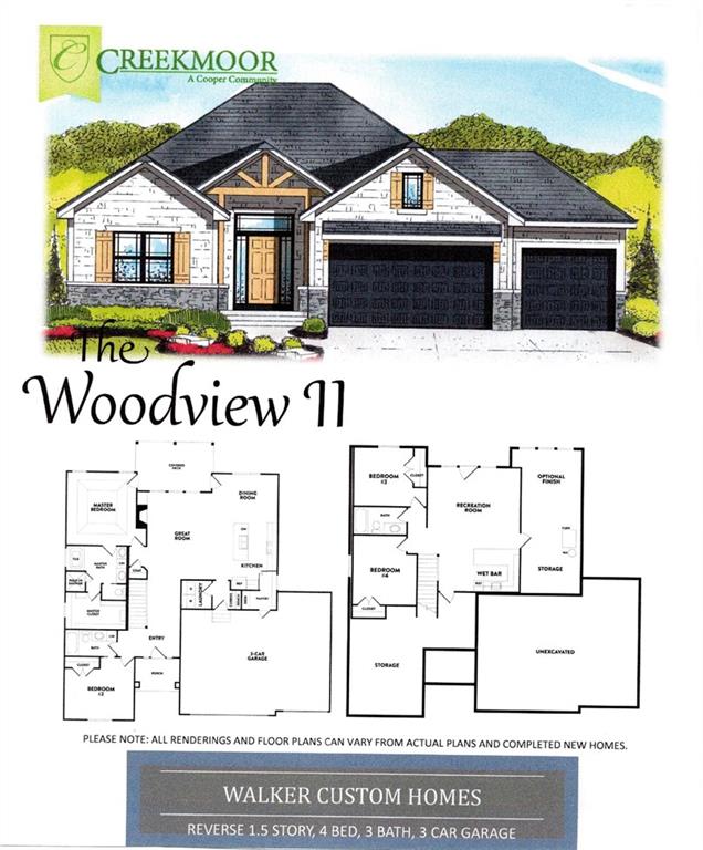 Discover the allure of the WOODVIEW II built by Walker Custom Homes! The expansive and inviting reverse 1.5 story residence is thoughtfully designed to create and ideal setting for family gatherings and entertaining friends. The spacious kitchen boasts stainless steel appliances, a generous island and a walk-in pantry, seamlessly flowing into the Great room and covered deck. Hardwood flooring graces the entry, great room, and kitchen, adding a touch of elegance. Retreat to the master bedroom, complete with a double vanity and a generously sized walk-in closet. The lower level expands the living space witha family room and two additional bedrooms, providing ample room for relaxation and privacy. Take advantage of Creekmoor amenities, including access to Lake Creekmoor gold course, a clubhouse with an exercise facility, restaurant and bar. Additionally, indulge in two of the community pools, tennis/sports courts and scenic walking trails. This home offers the added benefit of yard irrigation system and picturesque backdrop, backing onto Creekmoor Championship Golf Course. Home is under construction with est. completion early to mid January 2026. Creekmoor's resort style living without leaving home is waiting for you. Home is under construction and final sale's price is subject to change.