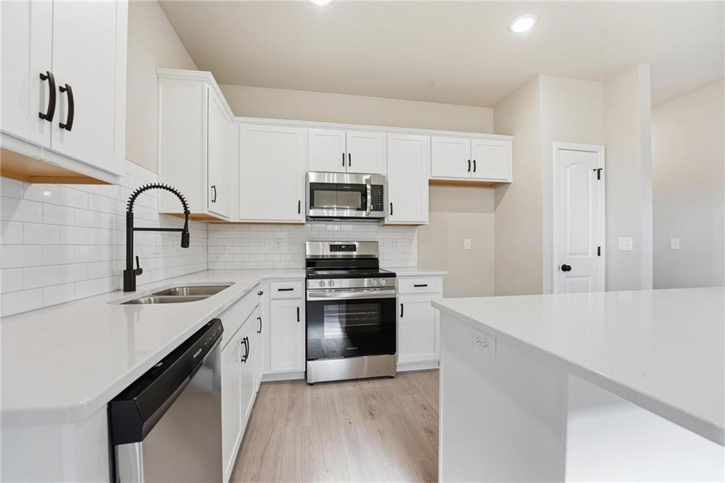 Welcome to the Wynn by Ashlar Homes! This beautifully designed 3-bedroom, 2-bath ranch-style home offers an open concept layout with a spacious kitchen, dining area, and great room—perfect for everyday living and entertaining. Enjoy durable and stylish LVP flooring throughout the main living areas and hallways, with cozy carpet in all bedrooms. The kitchen features elegant quartz countertops, a tile backsplash, and a large island for added prep space. Bathrooms also showcase quartz counters, while the primary suite includes tile flooring and tiled shower walls for a spa-like retreat. Relax outdoors on the covered deck. Located in a vibrant community with resort-style amenities including a pool, playground, firepit, pond, and coming soon—an amphitheater, pickleball and basketball courts, and a 3-hole frisbee golf course. This home offers the perfect blend of comfort, style, and community living!