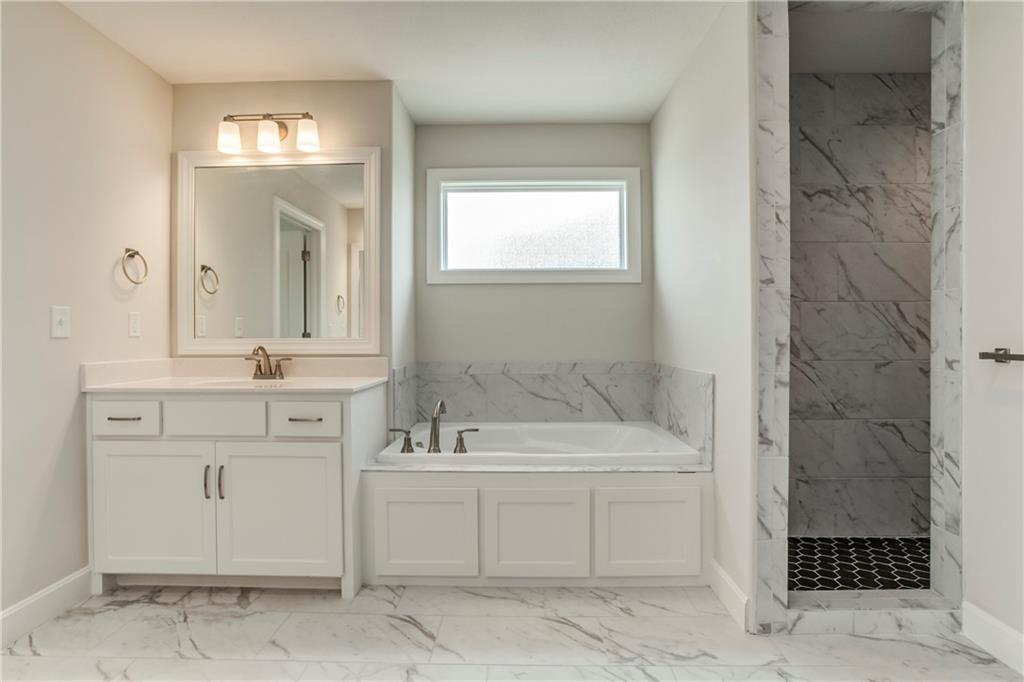 FENCE INCLUDED! Don't miss the opportunity to have this amazing FORMER MODEL home. One of the last 3 completed new homes available in this phase! Final phase of COPPER SPRINGS III Subdivision! Additional UPGRADES include a sprinkler system, full-height stone fireplace, Enamel kitchen cabinets with additional kitchen cabinets and island top extension, top-control quiet series dishwasher, stone-wrapped garage door elevation upgrade on 2-car area, and upgraded front porch. LED color-changeable lighted vault in the master bedroom, and the secondary bedrooms are pre-wired for future ceiling fans. Quartz kitchen countertops, jetted-master tub, garage door openers for both doors, keypad, and painted garage interior walls. 8lb pad under all carpet, R-49 attic insulation, insulated garage walls and door, 2-inch Faux wood blinds as shown. Towel bars and rings are included. Stone-look vanity tops, large shower tiles, framed mirror in half-bath and master bath. Taxes figured from the last tax bill. No Special Assessment Taxes in Copper Springs! HOA amenities include a heated pool with a slide and splash zone, and extended pool season if the weather cooperates! SQFT and taxes are estimated! Note: digitally staged photos included.