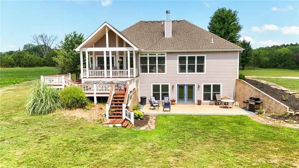 BACK ON MARKET NO FAULT TO SELLERS. Discover this custom-built, 5-bedroom, 3-bath walkout ranch on 18.29 acres just north of Perry. Crafted in 2003 by Houston Construction, the home showcases hickory cabinets, hardwood floors, large windows, a cozy fireplace, and a full finished walkout basement opening to serene prairie and some timber. This lovely home is perfect for hobby farming or enjoying nature or just having your own peaceful oasis to retreat to. Ideal for buyers seeking space, privacy, and quality craftsmanship off the beaten path. Large windows located off the back of the home allow natural sunlight to flood the rooms. Primary bedroom with ensuite and walk-in closet, laundry, a bedroom and office are all located on the main level. The full basement allows a perfect place for movie nights or game nights with two bedrooms and a nice sized storage area. Paved roads except for approximately 1/2 mile of gravel. There are 4 different outdoor areas to enjoy the peaceful view, enjoy a drink or curl up with a good book; the covered front porch, the smaller covered porch off the back, the deck and the patio on ground level. Convenient access to Lawrence or Topeka. Plus only minutes to Hillcreek Market in Lecompton, Perry Farm to Fork and Perry Lake. If you desire a lovely, quiet place to live surrounded by nature, schedule your showing today!