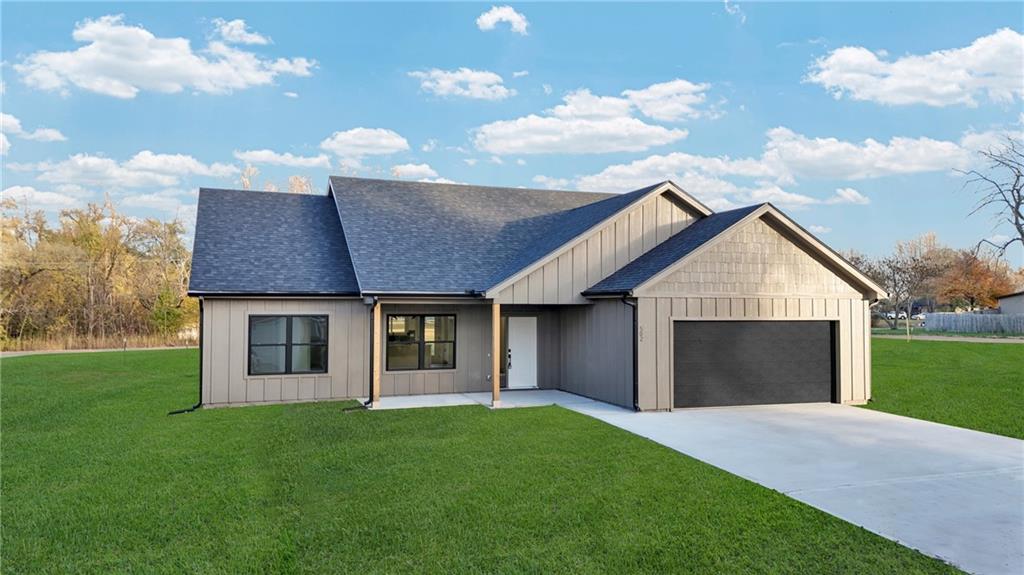 502 Washington Street, East Lynne, MO - Builder IS Offering 10K Buyer Credit. Can be used for any option The Oakley — New Construction | $325,000 | MLS #2563800 3 Bed • 2 Bath • 1,521 Sq Ft • Cass County • Timberview Farms • 2-Car Garage • Covered Patio Welcome to The Oakley, a thoughtfully designed new-construction ranch offering modern style, quality craftsmanship, and comfortable single-level living. Located in the peaceful Timberview Farms community, this 3-bedroom, 2-bath home blends rural charm with everyday convenience—just minutes from Pleasant Hill, Harrisonville, and Lee’s Summit. Interior Highlights, 1,521 sq. ft. of open-concept living. Bright, open layout with excellent natural light. Custom cabinets throughout the kitchen and baths. Quartz countertops for durability and timeless appeal. Large pantry offering excellent kitchen storage. Tiled backsplash for an elevated kitchen finish. Luxury vinyl plank flooring in all main living spaces. Carpeted bedrooms for warmth and comfort. Tiled bathrooms and tiled showers for a clean, upgraded, long-lasting design. Extra storage space thoughtfully incorporated into the layout. Spacious primary suite with full bath and walk-in closet. Exterior & Construction Features. Brand-new build featuring the desirable Oakley floor plan, 2-car garage. Covered patio, perfect for relaxing or outdoor entertaining. Low-maintenance exterior materials. Situated on a 7,710 sq. ft. lot in Timberview Farms, New & Completed! Ready for immediate move-in & new owners. Location Timberview Farms offers a quiet, small-community setting while still providing quick access to Cass County schools, amenities, and major highways. Enjoy the comfort and efficiency of new construction in a convenient and growing area. Perfect for first-time buyers, downsizers, or anyone seeking the benefits of a brand-new, move-in-ready home, The Oakley at 502 Washington Street offers dependable craftsmanship, modern finishes, and exceptional value in East Lynne.