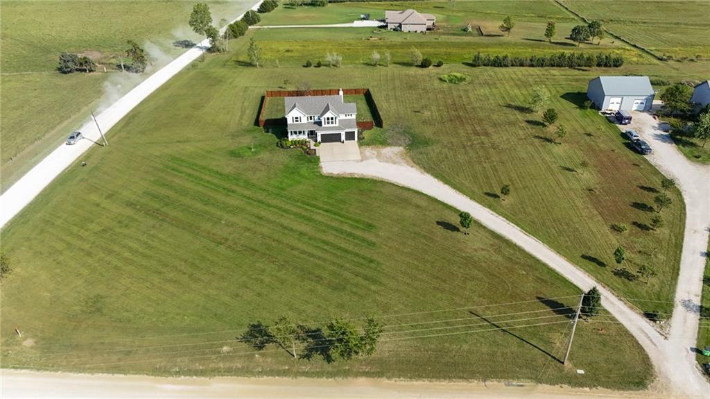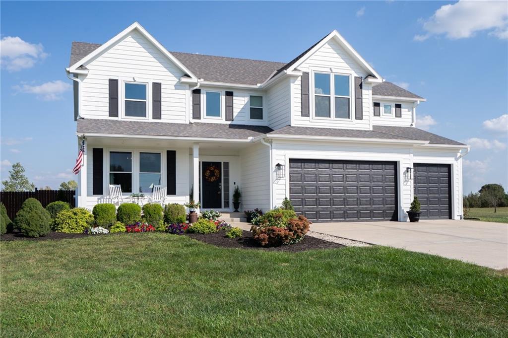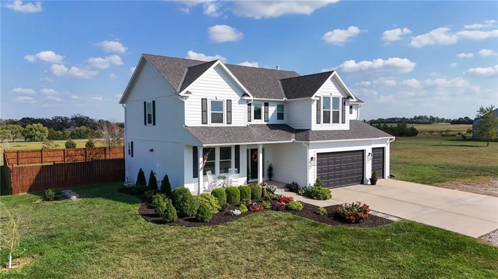 Welcome to this beautifully updated 4-bedroom, 3.5-bathroom, 3-car oversized garage home nestled on 3 peaceful acres in the highly sought-after Wellsville School District. With over 2,500 finished square feet above ground and an additional 1,000+ in the basement, this property offers the perfect blend of modern updates and country charm. Built in 2007 and thoughtfully refreshed in 2025, nearly every detail has been upgraded for comfort, efficiency, and style. Enjoy brand-new HVAC, new windows, newer appliances, new garage doors, new exterior lighting, plus a fully repainted exterior in crisp white, paired with modern new black garage doors for a clean, updated look. Inside, you’ll find a bright and airy floorplan with fresh interior paint throughout, a remodeled kitchen featuring painted white cabinets, and plenty of space to entertain or gather. The layout includes a spacious main-level living area, kitchen, and dining space, with all four bedrooms and the laundry room conveniently located on the second floor. The lower level is unfinished and ready for your personal touch—perfect for a rec room, home office, or guest suite. Step outside to enjoy wide-open space, mature trees, a privacy fence separating the home from the gravel road, and endless potential for gardening, hobbies, or outdoor entertaining. Located just minutes from I-35 with an easy commute to Olathe, Ottawa, or Lawrence, this move-in-ready home offers the best of both worlds—peaceful country living with modern amenities and no major projects left to do. Don’t miss your chance to own a stylish, turnkey home on acreage!