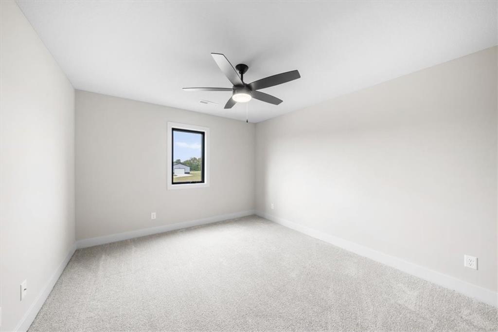 BUILDER IS OFFERING A 2/1 RATE BUYDOWN WITH ACCEPTED CONTRACT!! Discover our dream home in this breathtaking 1.5 -story home, perfectly situated on 3 acres. With 5 bedrooms and 4.5 bathrooms, this home offers unparalleled combination of elegance and comfort. Step inside to a grand open floor plan accentuated by soaring vaulted ceilings and abundance of floor-to-ceiling windows that fill the space with natural light. The chef's kitchen is a true highlight, featuring exquisite quartz countertops and convenient butler's pantry, perfect for entertaining guests. Enjoy seamless indoor-outdoor living on the covered deck, complete with a cozy fireplace, ideal for relaxing evenings or lively gatherings. A versatile flex room on the main floor provides the perfect space for a home office or guest bedroom, while the main floor primary suite serves as a private oasis. The spa like primary bathroom boasts a double vanity, an enormous walk-in shower, a luxurious soaker tub, and a spacious walk-in closet with convenient access to the laundry room. Upstairs you'll find 3 additional bedrooms and 2 full bathrooms, ensuring ample space for guests. Finished basement features rec area with a wet bar, a 5th bedroom, full bathroom, and plenty of extra storage. Located just 20 minutes from the heart of Lee's summit, this home combines country living with city convenience.