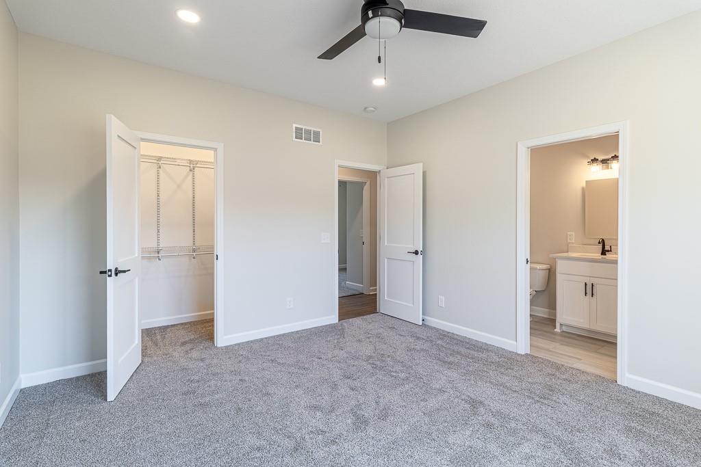 New 3-4 bedroom home in final construction phase located in The Hills of Greystone. Low maintenance exterior, covered patio. Great east end location, close to North Shoppes, Interstate and Oak Grove Elementary. The open floor plan boasts tall ceilings, beautiful island kitchen with custom cabinetry, quartz tops and stainless appliances including refrigerator. The tastefully finished lower level offers a flex room that can be either a 4th bedroom or family room with full bath and laundry. 2 car garage includes opener and handy keypad entry. High efficiency gas furnace plus heat pump. Take a tour and check out all the quality features this home offers. Mid-late August completion date. Taxes listed are on lot only.