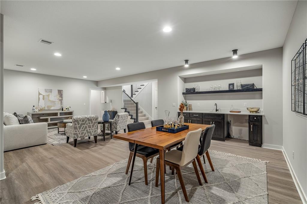 Discover the "Sicilian II" from Pauli Homes — a contemporary take on the ever-popular "Riviera" floor plan. It preserves the style and functionality you love while fitting into a more compact, intelligently designed footprint. The bright, open main level spans 1,826 square feet and is built for effortless daily living and effortless entertaining. It features a generous great room that flows naturally into a stylish kitchen anchored by a large island — ideal for meal prep, casual dining, or hosting friends. Abundant windows surround the dining area, bathing the space in natural light. The luxurious primary suite offers a true retreat, complete with a spa-like bathroom featuring a freestanding tub, dual quartz vanities, and a spacious walk-in shower. Laundry is conveniently accessible from both the primary closet and the main hallway. Downstairs, the finished lower level delivers an impressive 1,294 additional square feet of versatile living space, including a recreation room, a walk-up wet bar, a flexible bonus room, two bedrooms, a full bathroom, and abundant storage options. Come see this gorgeous home in Olathe's newest maintenance provided community! Maintenance includes: lawn, trimming, mulch, sprinkler system & snow removal.