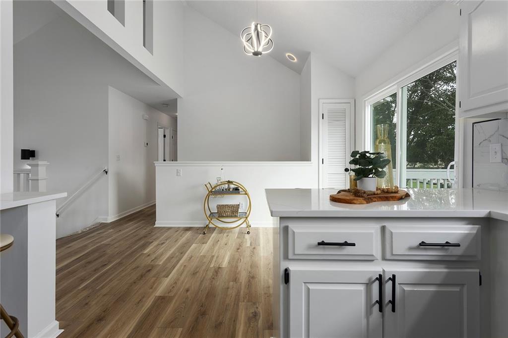 Step into this beautifully renovated 3-bedroom, 3-bathroom home where modern updates meet functional charm. The main living room features soaring vaulted ceilings and an abundance of natural light, creating an airy and inviting atmosphere. The updated kitchen is a dream, complete with new appliances, sleek quartz countertops, two breakfast bar areas perfect for barstools, and a convenient reach-in pantry. The spacious primary suite is a true retreat with its own vaulted ceiling and cozy fireplace—ideal for unwinding at the end of the day. One of the additional bedrooms is a kid’s dream, complete with a ladder leading to a bonus loft area—ideal for a playroom, reading nook, or hideaway. The finished lower level offers a second family room and a full bathroom, making it a perfect space for guests, a 4th bedroom, or a private retreat. Outdoor living is just as impressive, with a deck off the main level and a covered patio accessible from the walkout basement—great for entertaining or relaxing in any season. The outbuilding includes a full-size garage door and offers endless potential: use it as a third garage bay, a workshop, man cave, or she shed. Don’t miss your chance to own this unique, move-in-ready home with flexible space.
