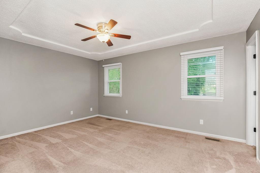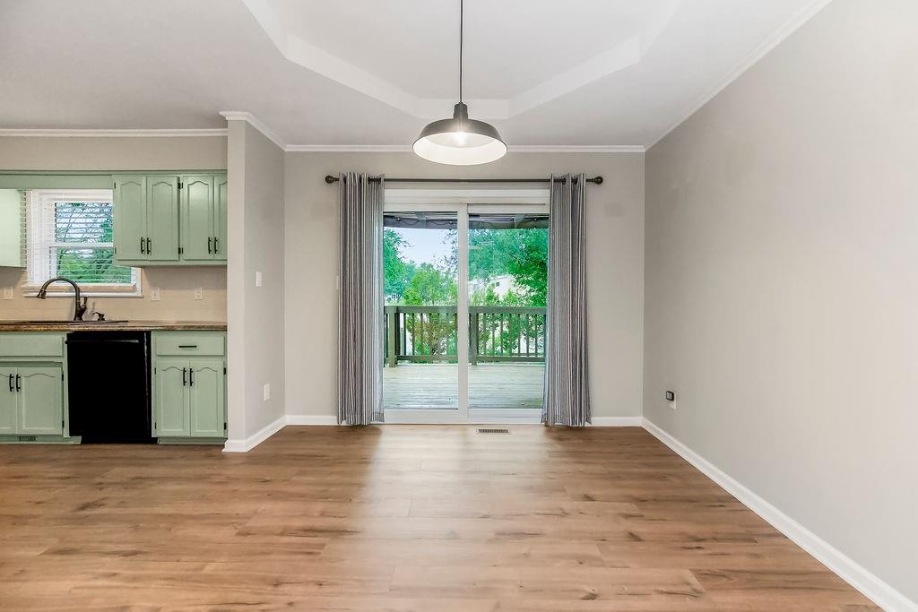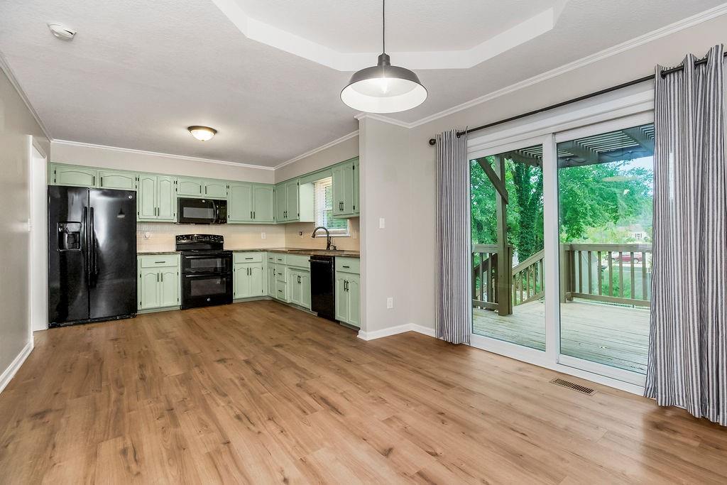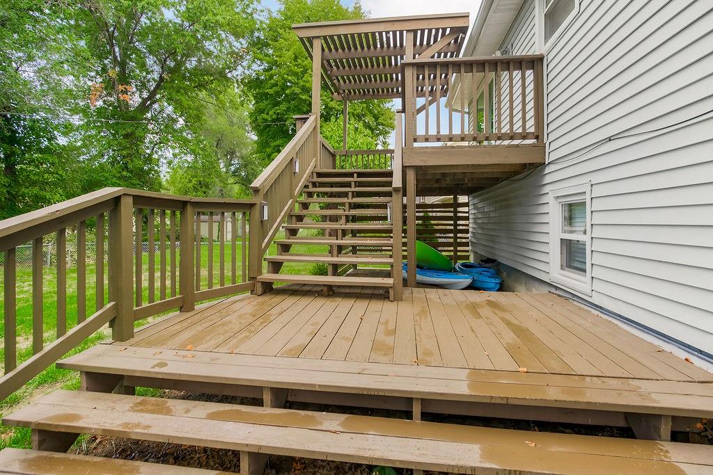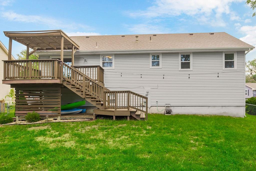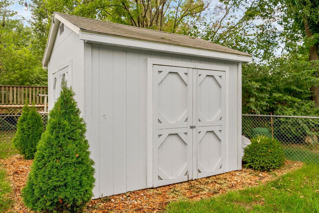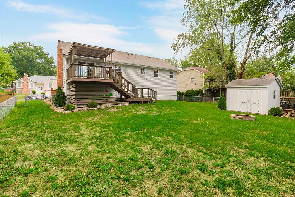 Welcome to this spacious split-entry home in the sought-after Canterbury subdivision, where style and comfort meet. The striking bright blue front door sets the tone for what you’ll find inside—character, space, and a layout made for everyday living. Step into the living room, where updated flooring and natural light create a welcoming feel. The kitchen features painted cabinets and a double oven, with the dining area highlighted by a tray ceiling. From here, step out onto the covered deck that flows down to a second deck below, offering plenty of space for outdoor dining, entertaining, or simply relaxing. The fenced backyard adds privacy and includes a handy storage shed. The large primary bedroom is a true retreat with its private en suite, while additional bedrooms offer flexibility for family, guests, or a home office. Downstairs, the finished basement with half bath provides even more room—perfect for a second living area, rec space, or hobby zone. The garage includes built-ins and a sink, making it as functional as it is spacious. With so much room to spread out, both indoors and out, this home offers the perfect blend of convenience, charm, and livability in the Liberty school district.