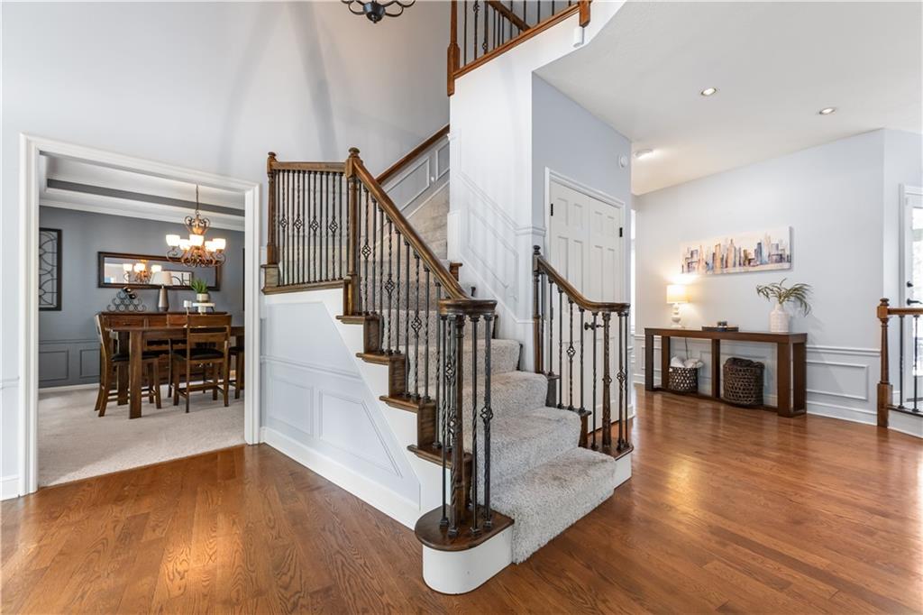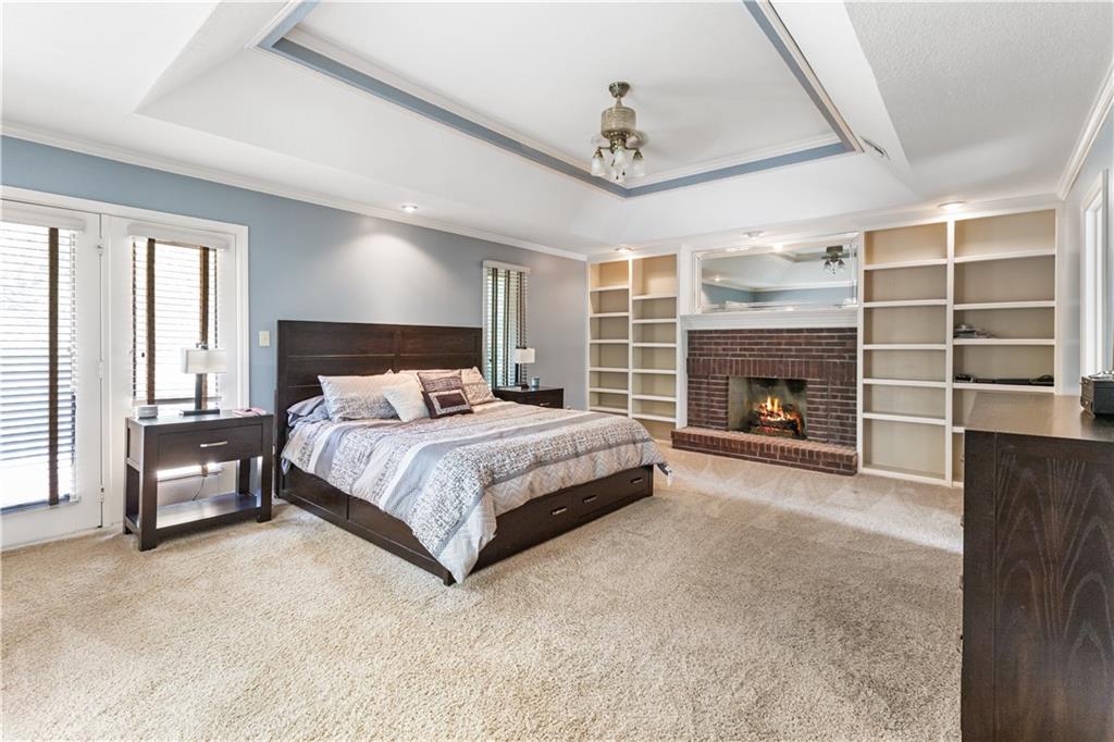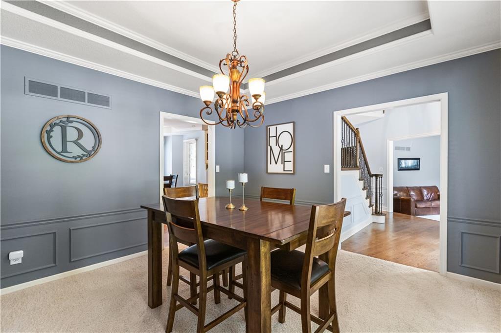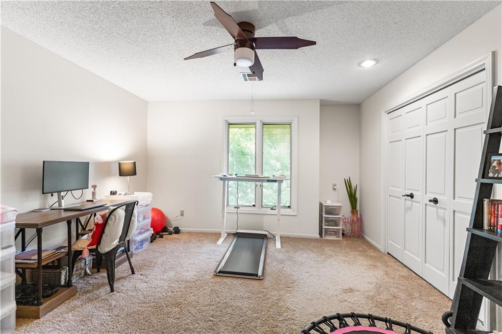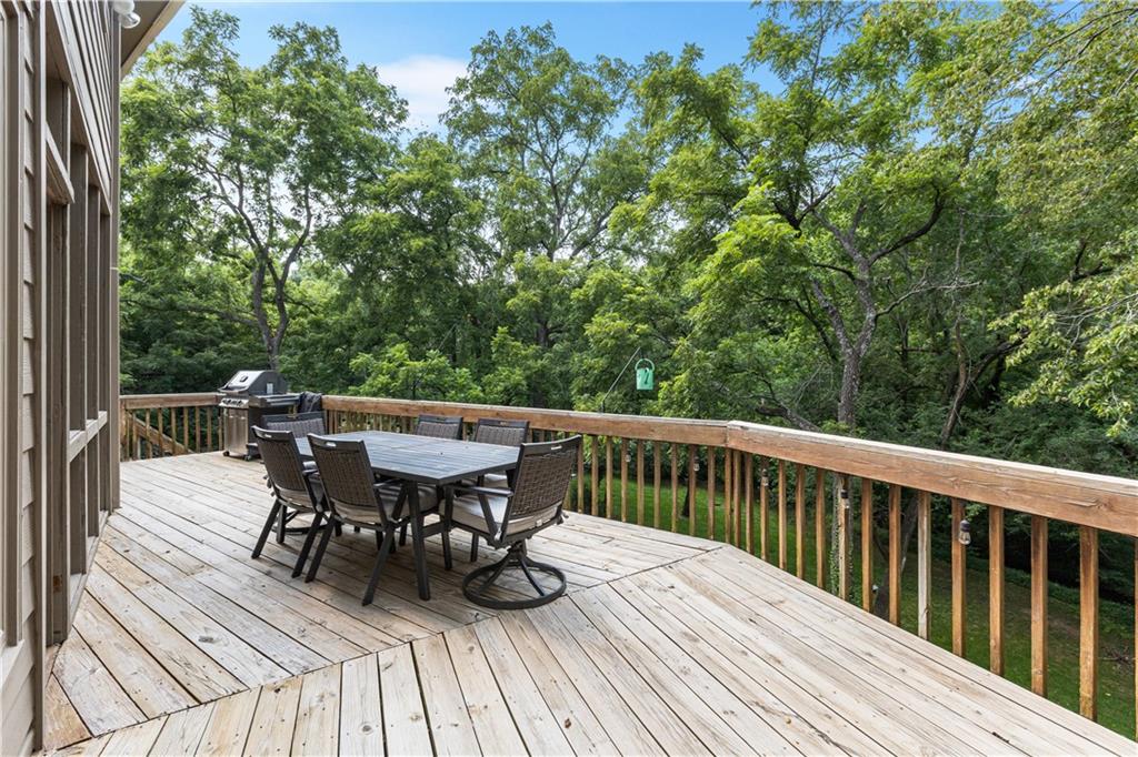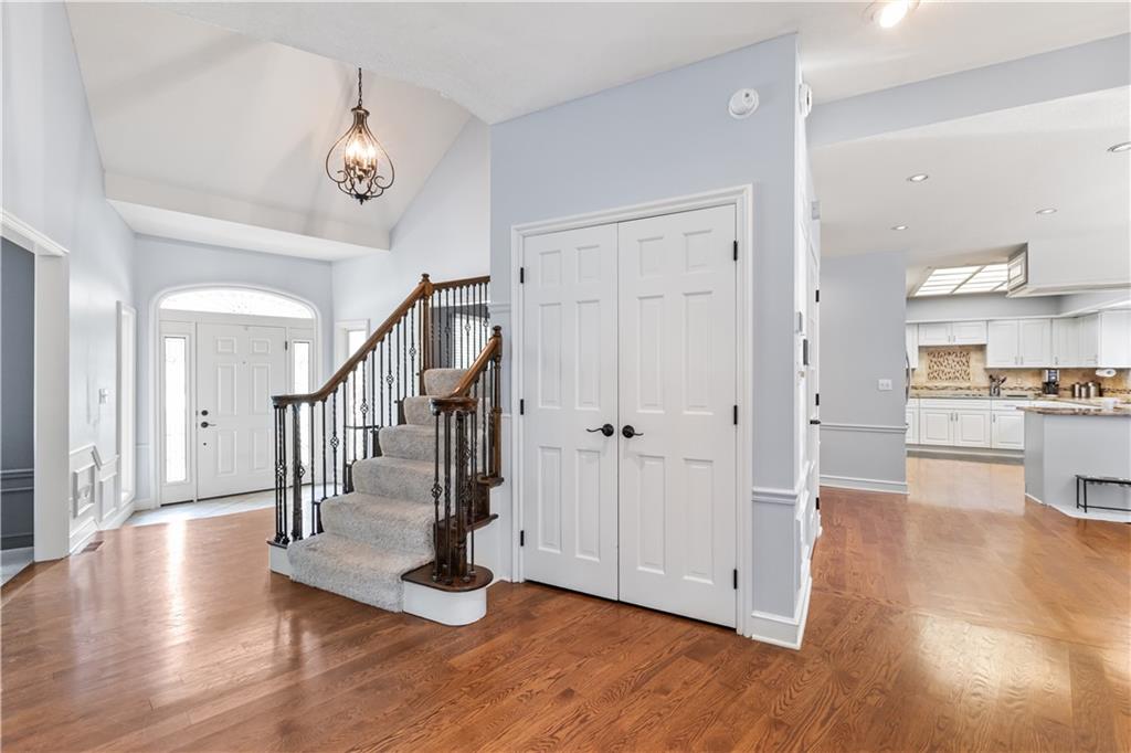 Situated in the highly sought-after Timber Trace neighborhood, this beautiful two-story residence offers the perfect blend of sophistication, comfort, and functionality. Resting on nearly an acre of wooded land, the property provides a peaceful, private retreat while still being conveniently close to premier shopping, dining, and the esteemed Blue Hills Country Club. Meticulously maintained and thoughtfully updated, the home features numerous improvements that enhance both daily living and long-term value. Newer HVAC and air purification systems ensure year-round comfort and clean air throughout the home. A whole-home security system, wireless dog fence, and central vacuum system add modern convenience and peace of mind, while the in-ground irrigation system keeps the expansive lawn lush and vibrant with minimal effort. The interior offers a refined yet welcoming atmosphere. The den, with its rich custom wood walls and cozy fireplace, serves as an inviting space for relaxation or entertaining. Upstairs, the luxurious primary suite is a true retreat, highlighted by a spa-inspired bathroom complete with a freestanding soaking tub and a tankless water heater that ensures endless hot water. The recently remodeled lower level expands the home’s versatility, featuring a full second kitchen ideal for guests or entertaining, a dedicated workout studio for fitness enthusiasts, and a third garage bay perfect for lawn equipment or recreational vehicles. Designed for both everyday living and stylish entertaining, this exceptional home offers the rare combination of privacy, modern upgrades, and timeless elegance in one of the area’s most prestigious communities. With every detail carefully considered, it is a property that truly stands out and must be experienced to be fully appreciated.