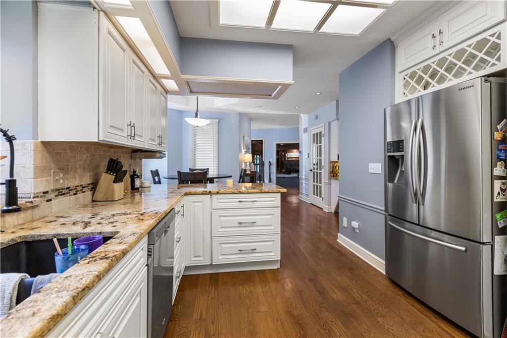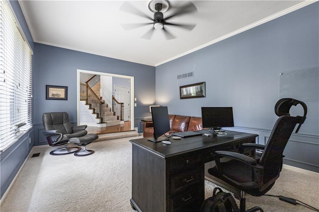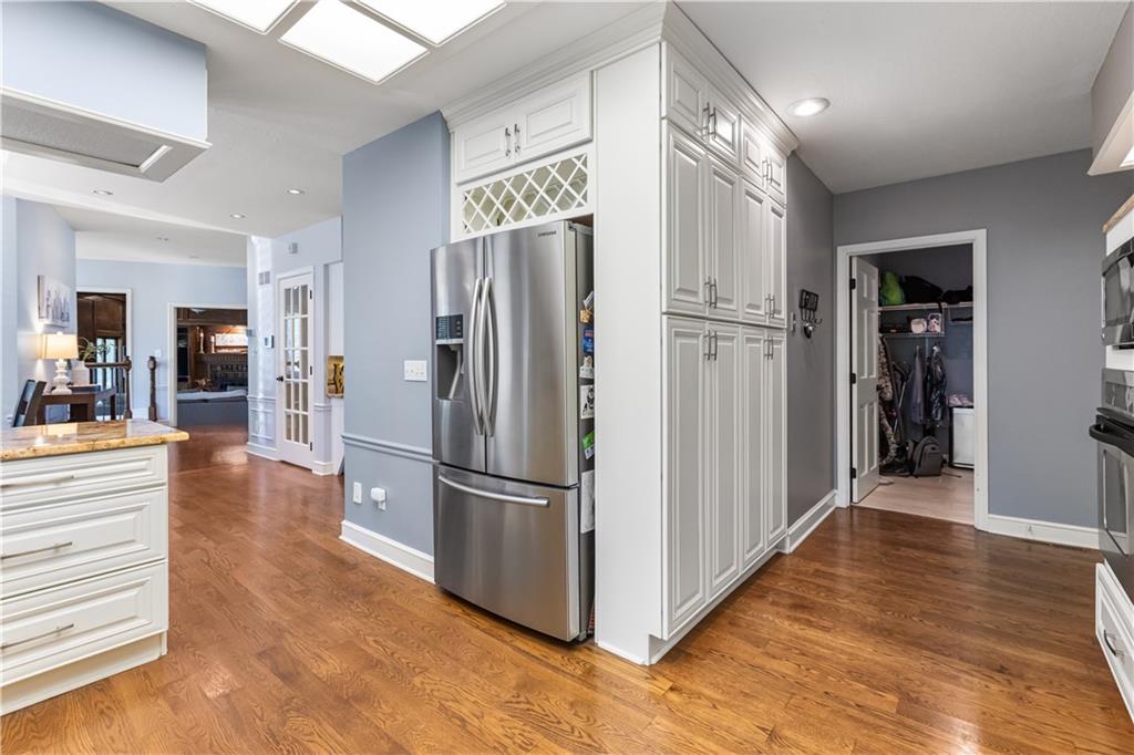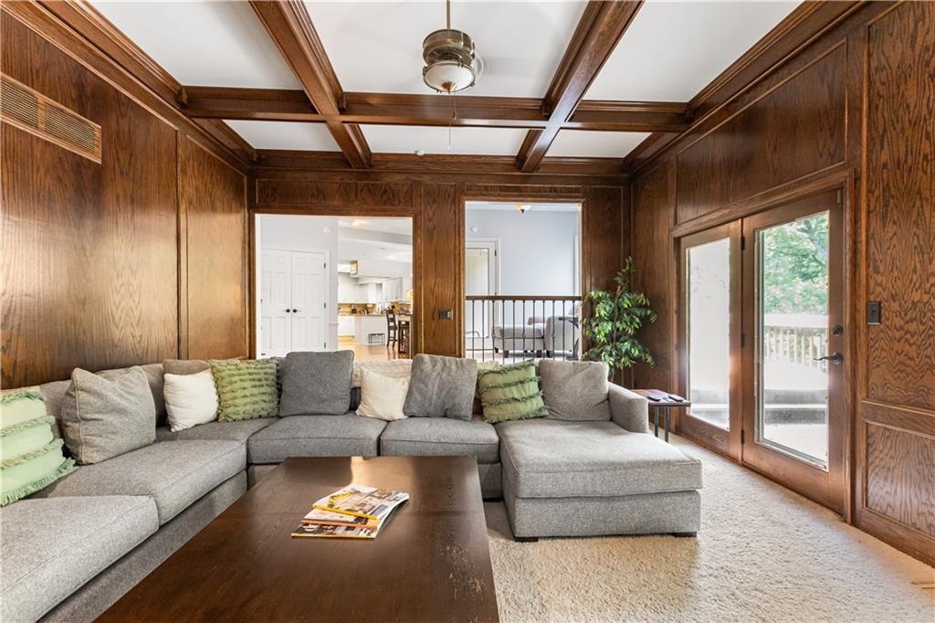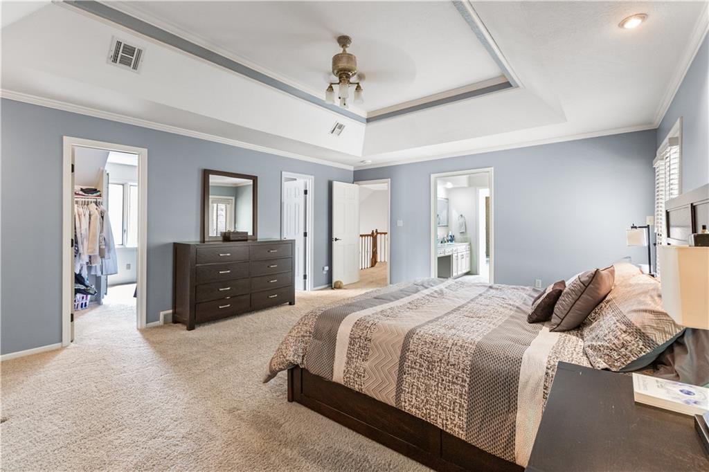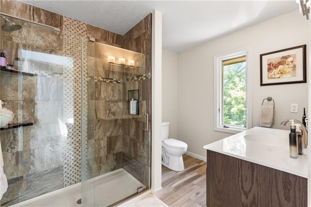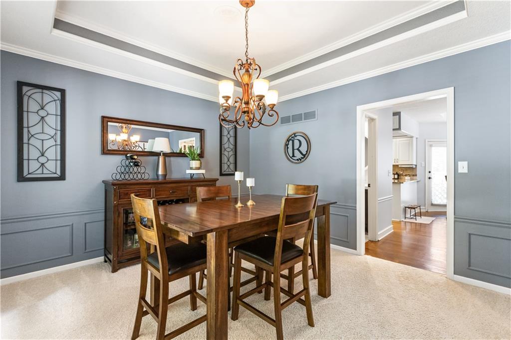 Situated in the highly sought-after Timber Trace neighborhood, this beautiful two-story residence offers the perfect blend of sophistication, comfort, and functionality. Resting on nearly an acre of wooded land, the property provides a peaceful, private retreat while still being conveniently close to premier shopping, dining, and the esteemed Blue Hills Country Club. Meticulously maintained and thoughtfully updated, the home features numerous improvements that enhance both daily living and long-term value. Newer HVAC and air purification systems ensure year-round comfort and clean air throughout the home. A whole-home security system, wireless dog fence, and central vacuum system add modern convenience and peace of mind, while the in-ground irrigation system keeps the expansive lawn lush and vibrant with minimal effort. The interior offers a refined yet welcoming atmosphere. The den, with its rich custom wood walls and cozy fireplace, serves as an inviting space for relaxation or entertaining. Upstairs, the luxurious primary suite is a true retreat, highlighted by a spa-inspired bathroom complete with a freestanding soaking tub and a tankless water heater that ensures endless hot water. The recently remodeled lower level expands the home’s versatility, featuring a full second kitchen ideal for guests or entertaining, a dedicated workout studio for fitness enthusiasts, and a third garage bay perfect for lawn equipment or recreational vehicles. Designed for both everyday living and stylish entertaining, this exceptional home offers the rare combination of privacy, modern upgrades, and timeless elegance in one of the area’s most prestigious communities. With every detail carefully considered, it is a property that truly stands out and must be experienced to be fully appreciated.