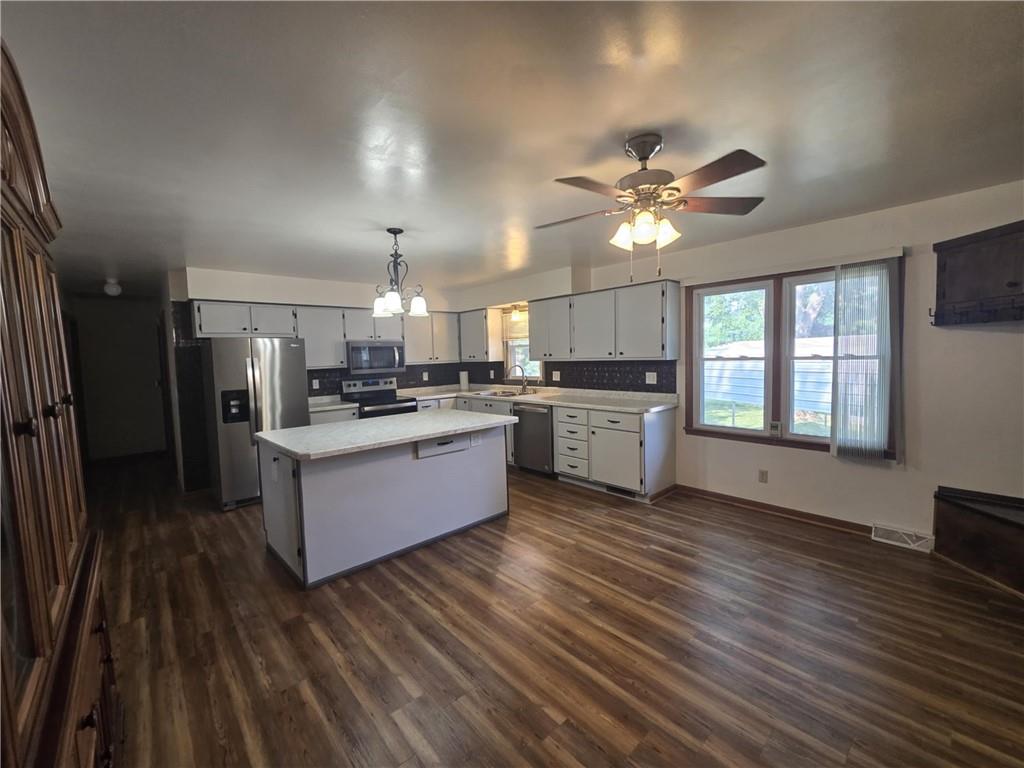 This well maintained ranch home won't last long! The home features an updated open eat in kitchen with a fireplace! All newer appliances stay. The 3 bedrooms and main level are a plus! Outside you will find a carport with concrete floored shop/garage. All of this on a nice lot! Nestled with trees, what a great feel! You better call on this right away!