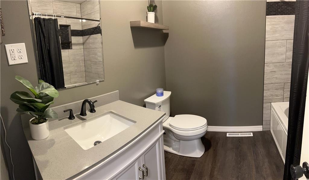 This beautiful 4 bedroom home is located where neighbors describe it as, ''the best area they've ever lived in!'' It absolutely feels like home! Charming, warm & move-in ready for you to make new memories & holiday traditions. Remolded with high end finishes & only a few things left to do, such as adding your own lit tree. As you pull up, your eye is drawn to the modern, sleek, color of the home. Not only does the sharp color have the wow factor, but the new eco friendly siding protects against weather damage, fading & is resistant to fire & pests. You'll love the low maintenance, along with new gutters, soffits, downspouts & privacy fencing. Park in the attached garage & once inside, you'll be in awe by the new wood plank flooring throughout the majority of the home, new lighting, paint colors & sleek design. Cozy up to the wood burning fireplace & enjoy the overflow space for holiday gatherings with a 2nd family room present. The bathrooms have been renovated using modern design & a new efficient HVAC system was recently installed for winter cost savings. A potential 2nd Master Bedroom, with retro originality, is located along the back section of the home, with an ensuite new full bath, laundry & private patio access. The original blonde hardwood floors are present in 3 of the bedrooms, allowing for the blending styles of antique & modern chic decor. If you love to cook, you'll be drawn to the spacious kitchen with white painted cabinetry, original custom ginger trim, a farm-style deep sink, black marble counters accented with white subway tiles, all new black & stainless appliances making it a kitchen fit for a queen! During cool evenings, enjoy the expanded back yard & patio area relaxing while roasting marshmallows around the firepit. This is an absolute must see when you're looking for space, beauty & home upgrades galore!