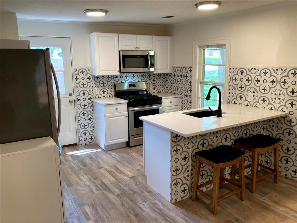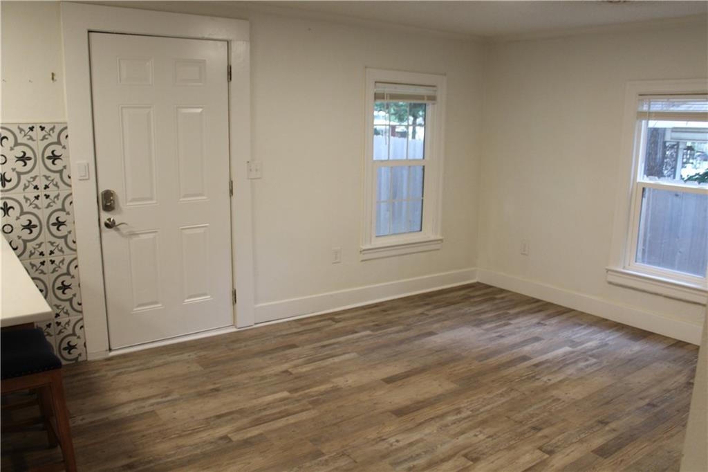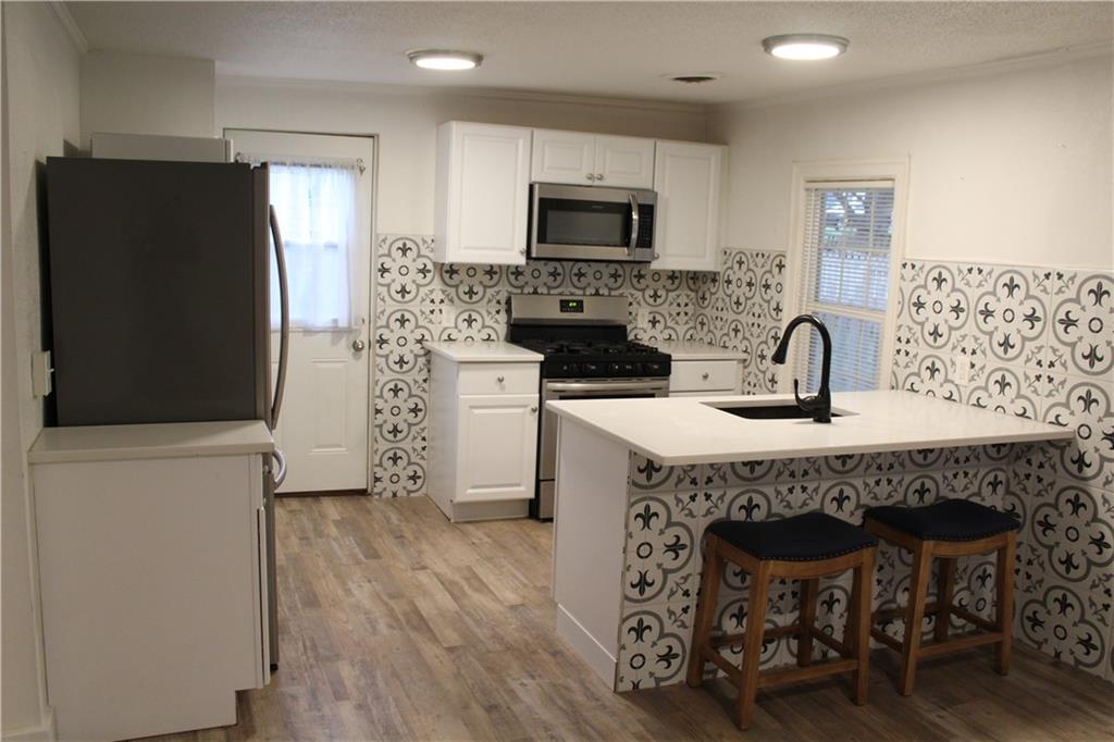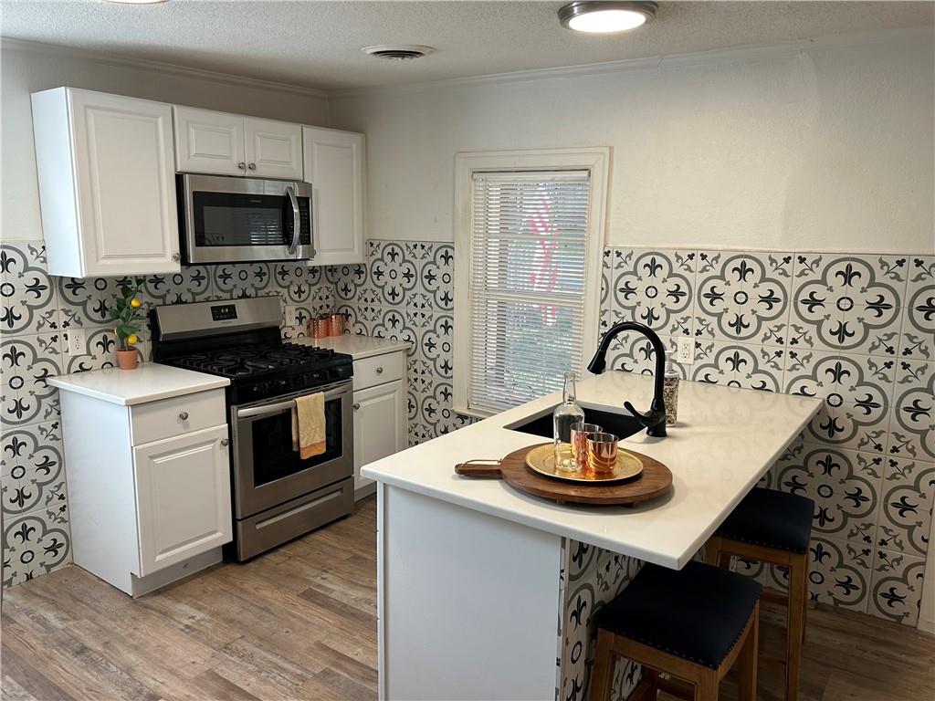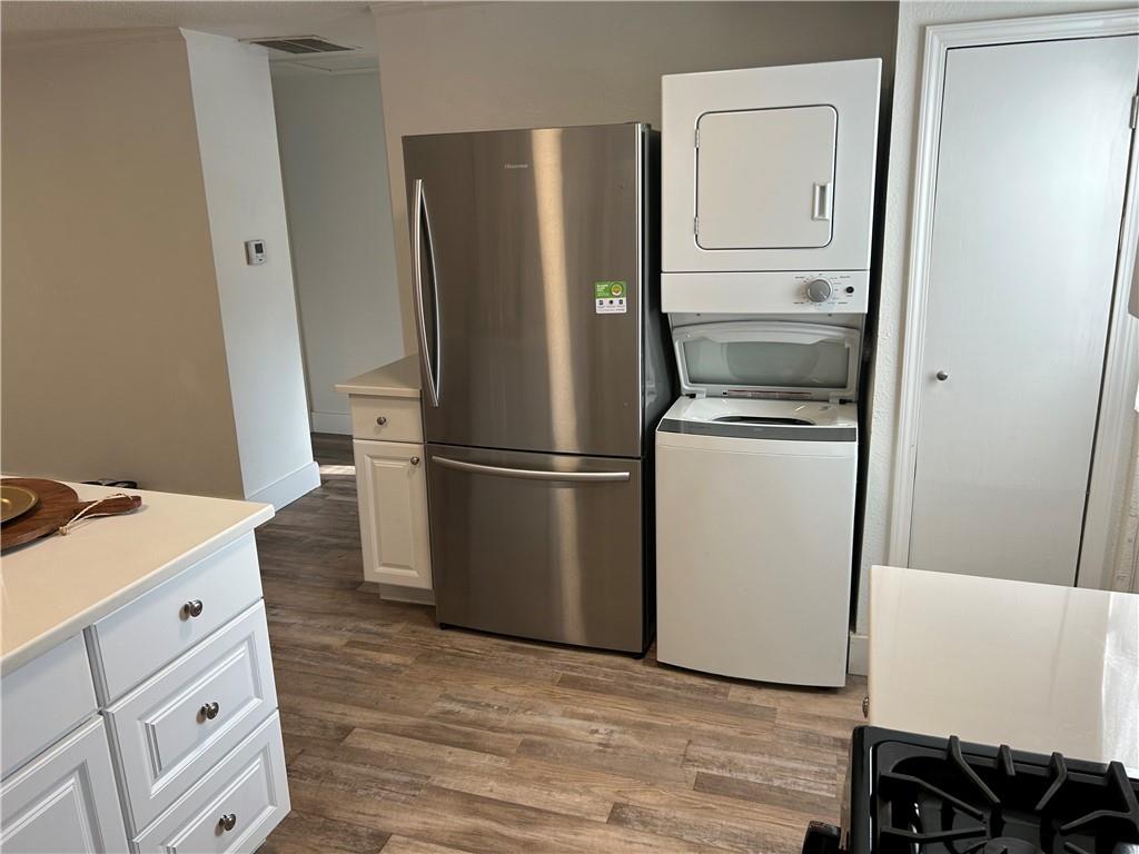 Cute one level living with numerous upgrades and improvements. As you enter the home you are welcomed by a covered front porch. Entering the home you are greeted by a family/kitchen combo featuring newer cabinets, quartz countertops, new stainless appliances and a stackable washer and dryer. Home also has LVP all throughout with 2 bedrooms and a fully updated bathroom. Backyard is huge and has a privacy fence for added security and privacy.