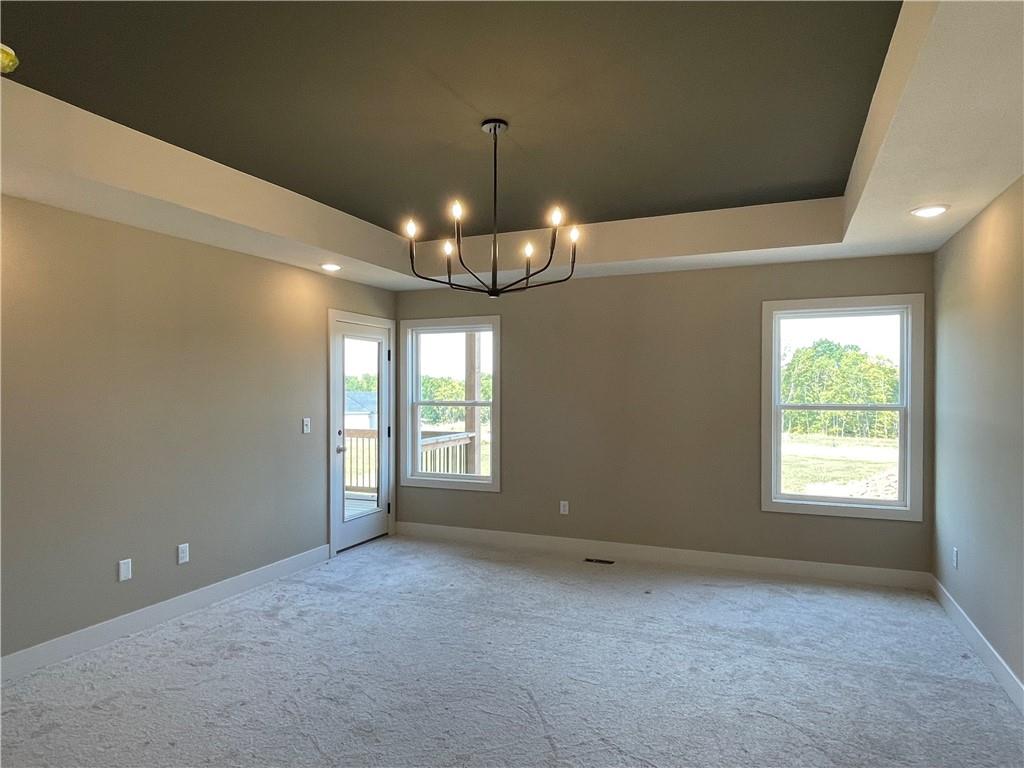 Azalea Gold by Kerns Homebuilding – Thoughtful design meets everyday comfort on a desirable corner lot. This 4-bedroom, 3-bath home offers true main-level living with the primary suite on the main floor and walk-out access to a covered deck from both the dining area and bedroom. The kitchen features custom cabinets, granite counters, and a walk-in pantry for style and function. The finished walkout lower level includes a bar with mini-fridge, cozy reading nook, two additional bedrooms, full bath, and generous storage—perfect for guests, entertaining, or hobbies. An open, airy floor plan with practical spaces makes this home the perfect balance of convenience and room to grow. This gorgeous home will be featured in the Kansas City Parade of Homes, September 20 – October 5th.