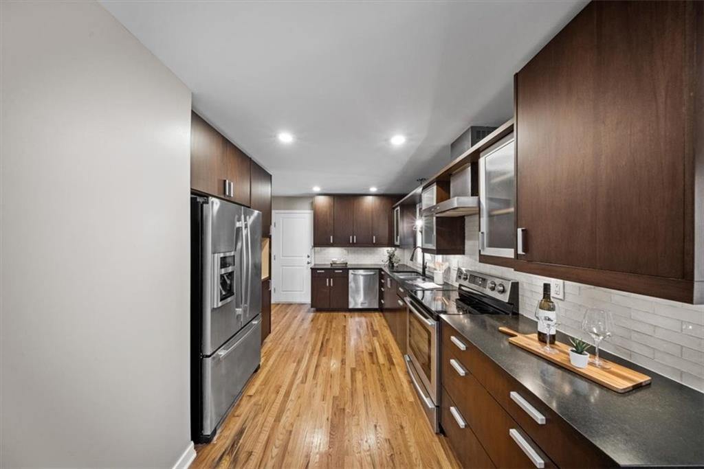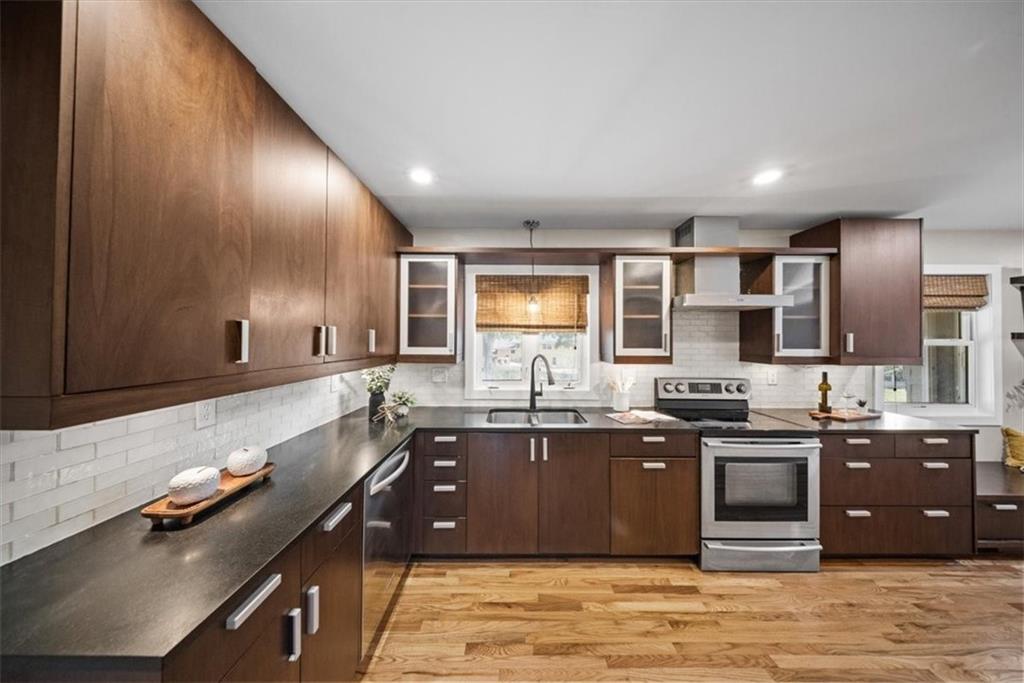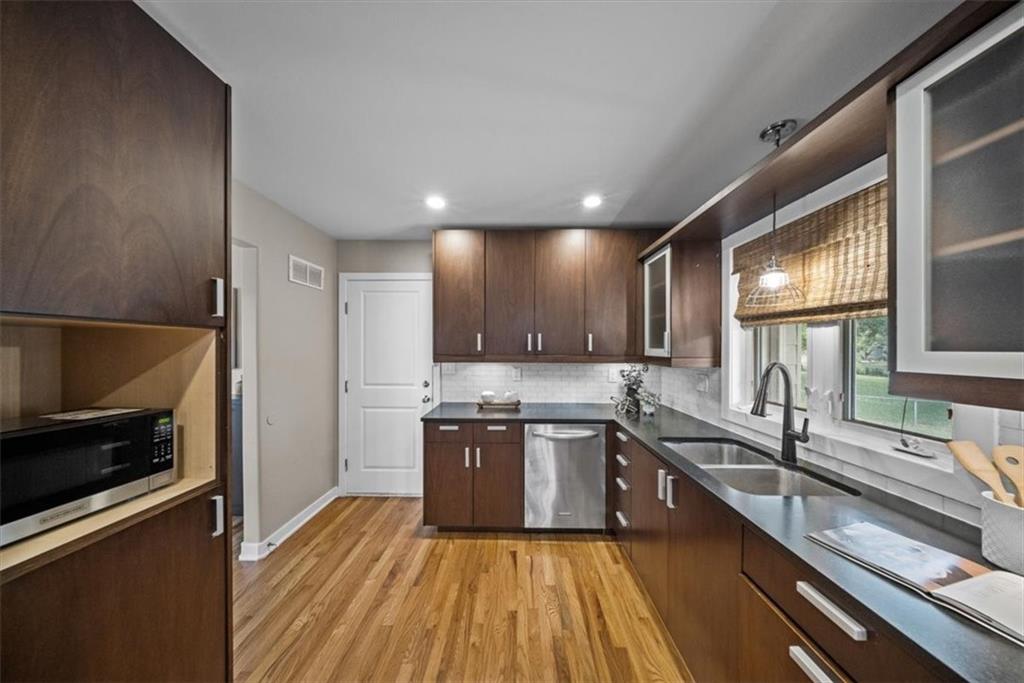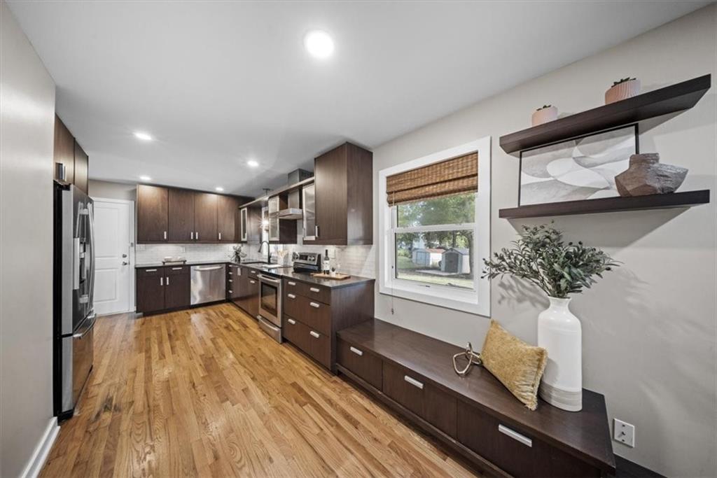 You’ve found it! Every upgrade you could imagine is already here—new custom cabinetry in the kitchen, baths, a built-in hutch in the dining room. Enjoy brand-new stainless appliances, beautiful hardwood floors, Hardie Board maintenance free siding, new windows, decking, and garage door, AND SEWER LINE from the house to the street—all designed for lasting quality. Zoned heating & cooling plus dual hot water systems keep everyone comfortable. The HUGE finished walk-out basement with private entry includes a full kitchen, laundry hook-ups, and two potential bedrooms—ideal for guests, roommates, or income potential. Excellent location near Red Bridge shops, dining, and easy highway access. Truly move-in ready and built to impress!