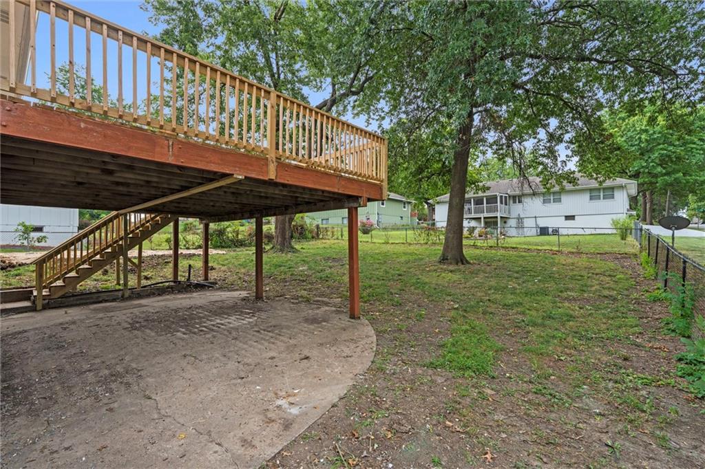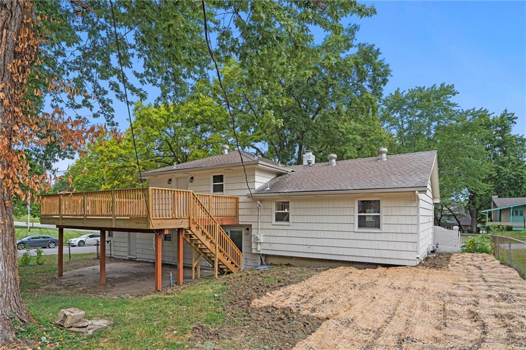 This home features a brand new kitchen with white cabinets, modern fixtures, and plenty of counter space. Fresh carpet in the finished lower level, updated bathroom with double sinks and walk-in shower, and new railing and spindles on the large deck. Spacious bedrooms, bay window in the living room, and flexible basement space with fireplace. Seller is willing to mudjack or repair the patio with an acceptable offer. Convenient to parks, schools, shopping, and highways. Move-in ready—schedule your showing today!