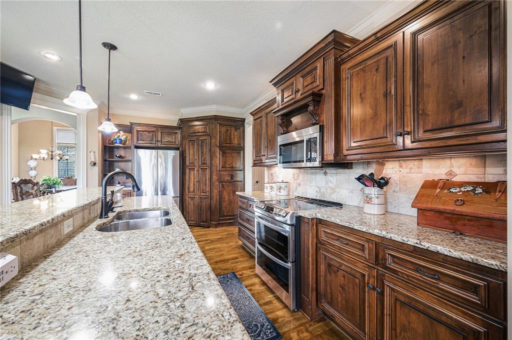 **Back on Market-BUYERS GOT COLD FEET** From the moment you arrive, you’ll be greeted by a beautifully maintained front lawn and thoughtfully landscaped garden beds, setting the tone for what awaits inside. Step through the front door into a spacious, light-filled entryway. To your left, the formal dining room is ready to host everything from family dinners to holiday celebrations. Continuing into the living room, you’re met with an abundance of natural light streaming through large windows, stunning wood built-in cabinets with storage, and a tiled fireplace — the perfect spot for cozy nights in. Through the living room, the kitchen offers more gorgeous wood cabinetry, stainless steel appliances, a breakfast bar, spacious corner pantry, and a sunny breakfast nook. Past the kitchen, you’ll find a bedroom and a full bathroom, along with a convenient laundry area. At the end of this hallway sits the spacious 3-car garage, ideal for vehicles, tools, and extra storage. On the opposite side of the main level, the primary suite is a true retreat. Featuring large windows, a massive walk-in closet, a walk-in shower, double vanities, and a soaking tub, this space offers the perfect blend of comfort and luxury. This level also includes access to a screened-in porch — perfect for summer evenings enjoying the peaceful views. Downstairs, the expansive recreation room is made for entertaining. Complete with a fireplace, wet bar, and walk-out access to the backyard, it’s the ideal space for game nights, movie marathons, or hosting guests. The lower level also includes two bedrooms (one with a walk-in closet) and a full bathroom with double sinks. Step outside to the concrete patio and picture your dream backyard. Whether you envision a sparkling pool, an outdoor kitchen and pizza oven, or a cozy fire pit gathering space, there’s plenty of room to make your vision a reality. This home offers comfort, space, and endless potential — ready for you to make it your own!