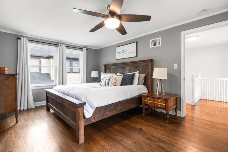 WELCOME HOME to this charming bungalow in the heart of the city that feels warm and inviting from the moment you arrive. Nestled on a quiet street, this 3 bedroom, 2 bath beauty offers the perfect blend of classic character and modern updates. Step inside to discover beautiful hardwood floors flowing throughout the home, FRESH interior paint and sunlight streaming through BRAND-NEW windows, creating an airy, welcoming space. The main floor bedroom offers convenience for guest or a home office, while two additional bedrooms upstairs provide cozy retreats. The updated kitchen makes cooking a joy, and both bathrooms have been stylishy refreshed for today's lifestyle. Step down to the finished lower level with extra living/entertaining space. Large utility room and extra storage are a bonus in the basement. Outside, the fenced backyard is ready for gatherings, complete with a brick patio perfect for weekend barbecues or quiet evenings under the stars. The detached garage provides extra storage and parking, adding both function and charm. This lovely home has been cared for and thoughtfully improved - ready for you to move right in and start making memories.