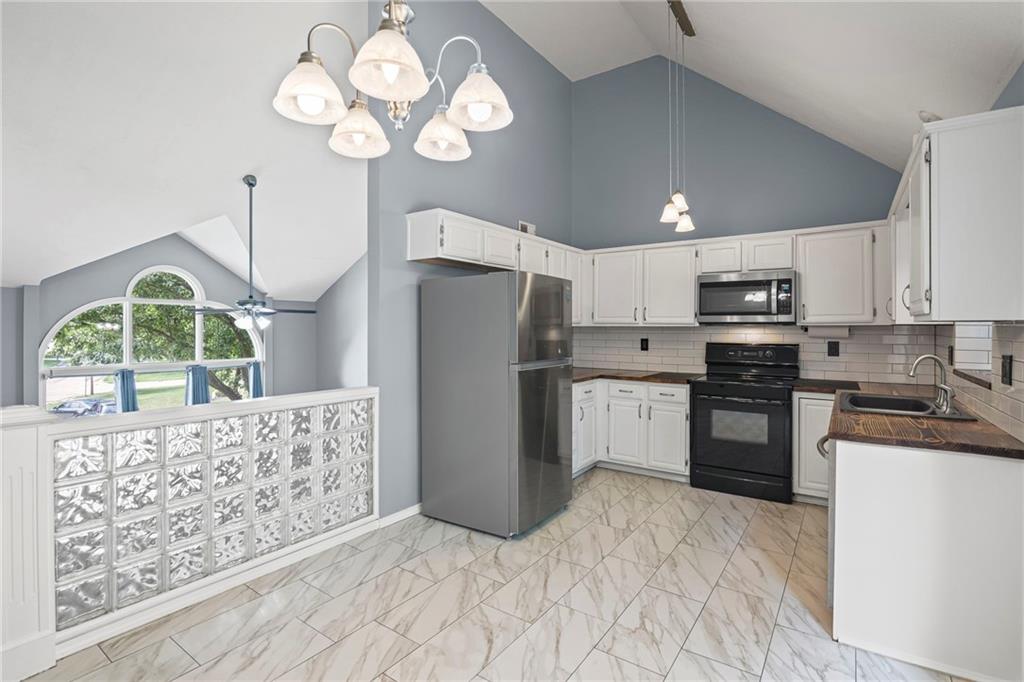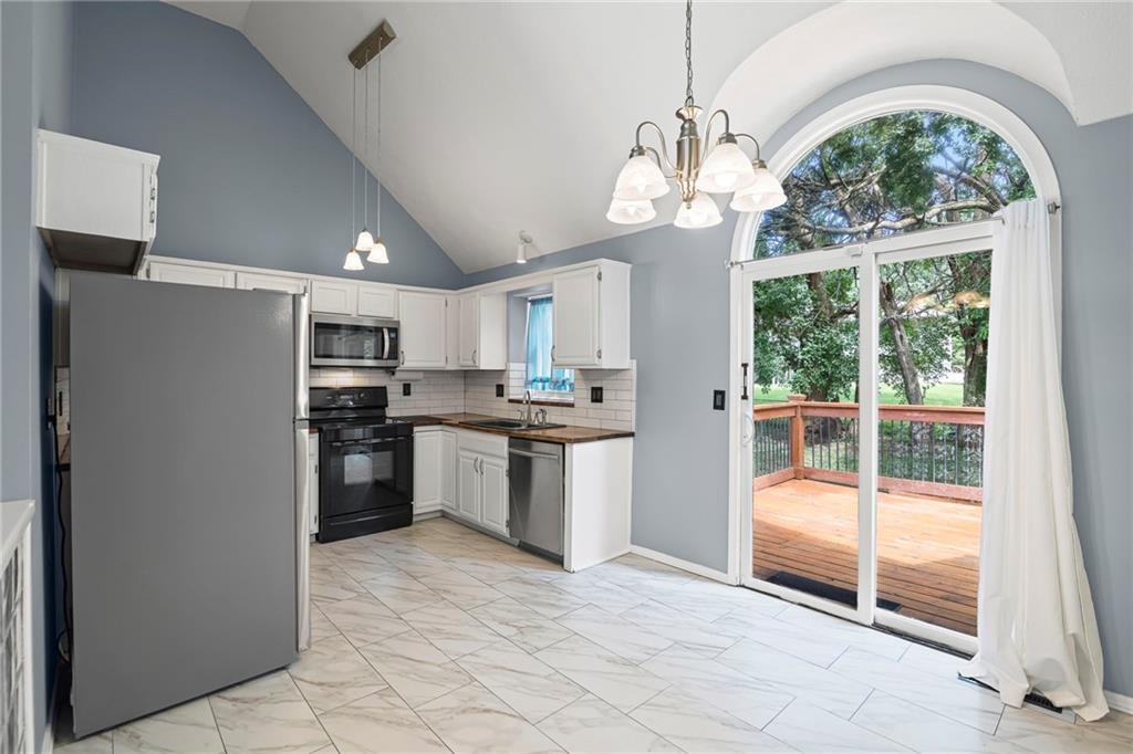 ** New Roof in March** Nestled in a quiet cul-de-sac surrounded by mature trees, this stunning split-entry home in the highly sought-after Stonebridge subdivision offers space, comfort, and convenience. Step inside to an open floor plan with vaulted ceilings, a cozy corner fireplace, and fresh paint throughout. The updated kitchen shines with stained wood counters, a brand-new stainless refrigerator, and plenty of storage. The upper level also features three spacious bedrooms, a beautifully remodeled hall bath, and the convenience of a bedroom-level laundry room. The lower level boasts a versatile recreation room and half bath, while the finished sub-basement provides an additional bonus room—perfect for a home office, gym, or playroom. Outside, enjoy entertaining on the expansive deck while taking in the shade and privacy provided by the mature trees. All of this in a prime location—close to shopping, major highways, and award-winning Blue Springs schools! Don’t miss your chance to call Stonebridge home—schedule your showing today!