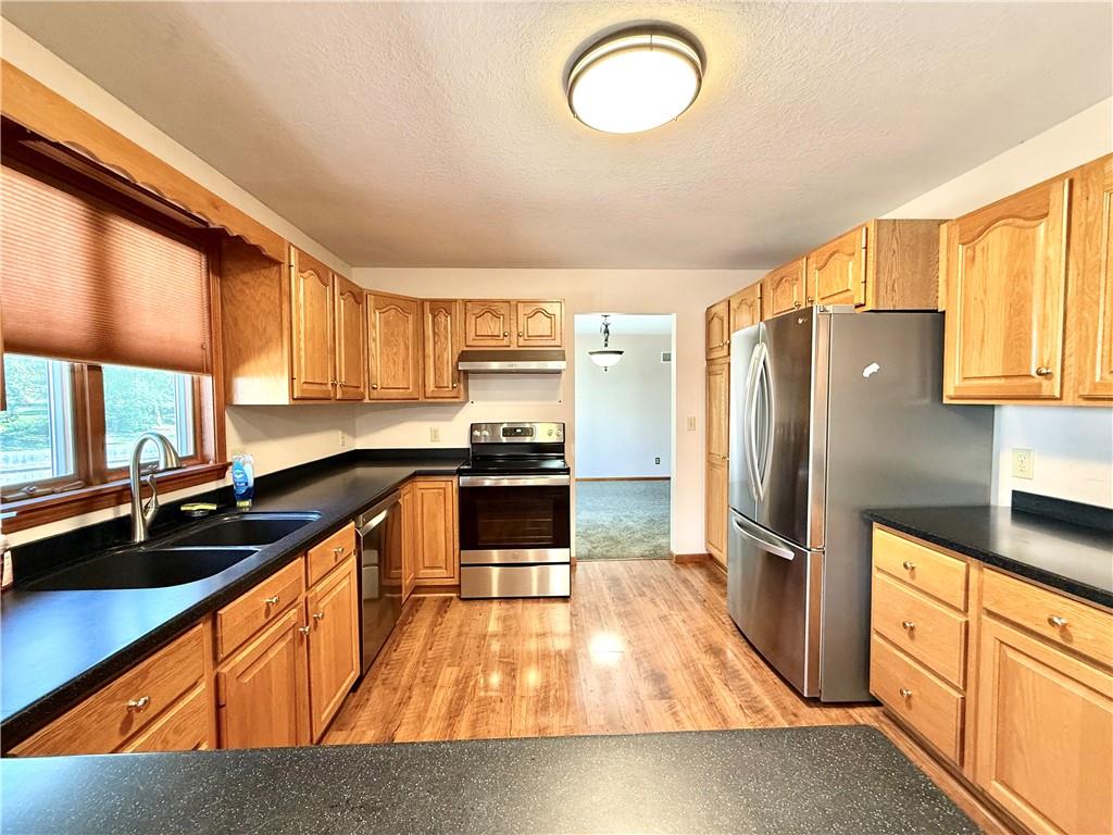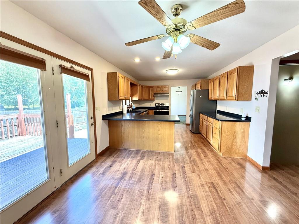 Spacious Ranch Home on Corner Lot with Over 3,500 Sq. Ft.! Welcome to this beautifully maintained ranch-style home situated on a generous corner lot in a highly desirable neighborhood. Boasting over 3,500 square feet of living space, this home features 5 spacious bedrooms and 3 full bathrooms, perfect for families of all sizes. Enjoy outdoor living with a fenced-in yard, nice back deck, and a stamped concrete patio—ideal for entertaining or relaxing. Inside, the home offers a large formal dining room, an oversized family room, and a cozy breakfast area in the kitchen. The kitchen is a chef’s dream, featuring solid surface countertops, tons of cabinet space, and all appliances included. The main-floor laundry adds convenience, while the abundance of storage throughout ensures space for everything. Each room is thoughtfully designed with ample space and functionality. This home has been very well cared for and is move-in ready. Don’t miss out on this exceptional opportunity!