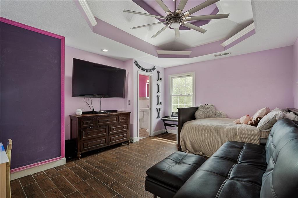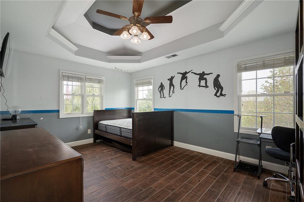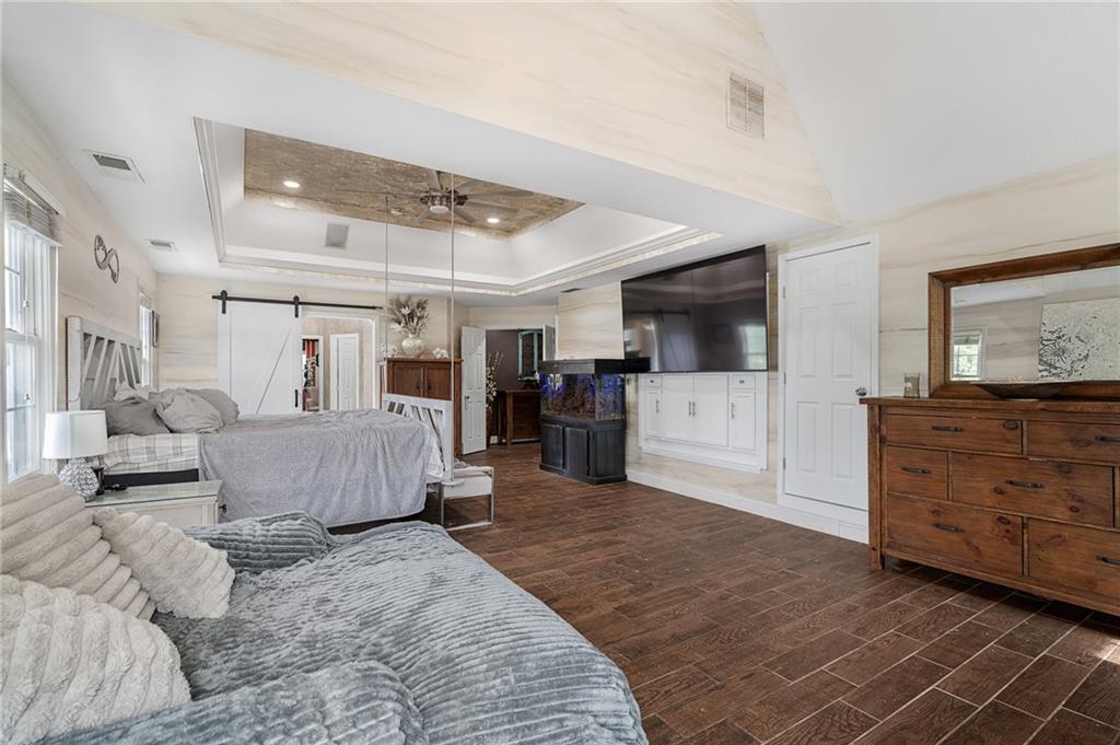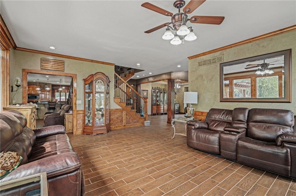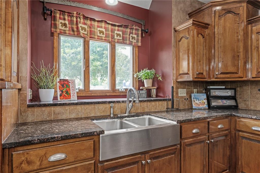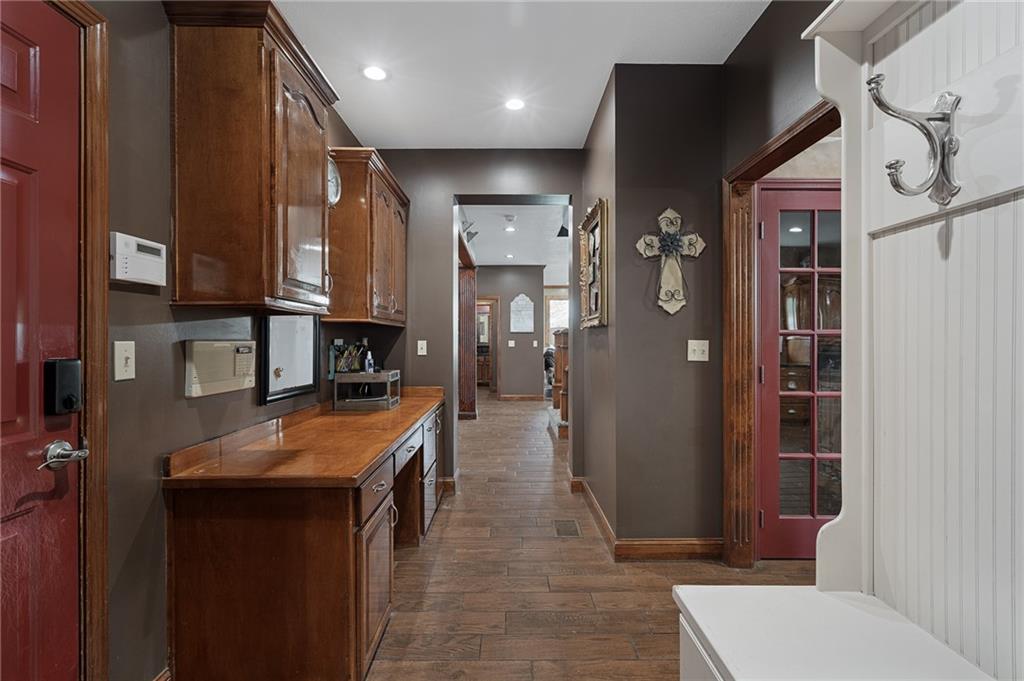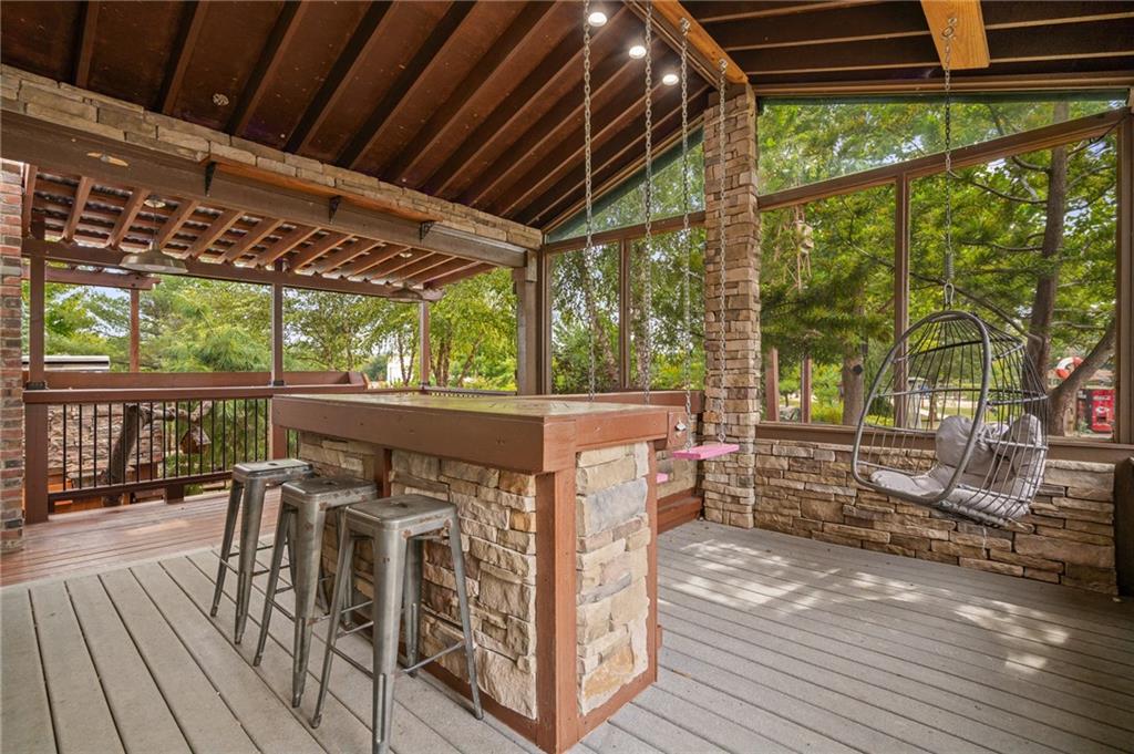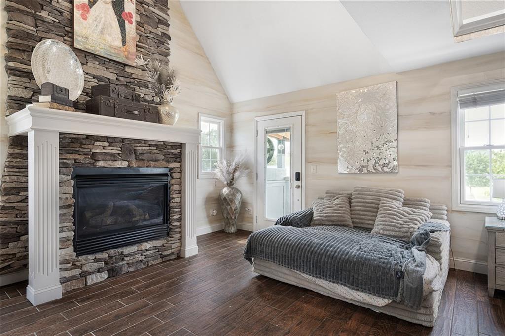 Unmatched in character and amenities, this gated 5-acre Lone Jack property is designed for those who love to entertain, live outdoors, and need space for a home-based business. The grounds are extraordinary, with two large ponds—one offering a sandy beach, dock, playhouse with hurricane deck, and zip line, the other showcasing a dramatic 12-foot stone waterfall. Multiple weeping willows surround the water, creating a picturesque, park-like setting. Outdoor living is unbelievable with a swimming pool, outdoor shower, festive poolside bar, basketball court, striped parking for nine cars, multiple firepits, fountains, and extensive landscaping and unique trees. A huge raised-bed garden with drip irrigation and automatic watering, vintage 1950s merry-go-round, playground and pergola framed with wisteria over the water complete the retreat. The 2006-built two-story home offers quality and comfort with hard surface flooring throughout the main level, five fireplaces, formal dining, office, and a hearth room/kitchen with island seating for five, Viking six-burner cooktop. French doors open to a fenced dog yard with pergola and hibachi grill. Upstairs, four bedrooms each enjoy private baths; the oversized primary suite boasts a fireplace, sitting area, private covered balcony with mini split, and a massive walk-in closet. The walkout lower level is built for gathering, with a theater, arcade, full bar, non-conforming fifth bedroom, full bath, and access to a saloon-style patio with hot tub and firepit. Complete set up for livestock and farm animals with fenced pen, multiple shelters and duck pond.. The property also includes a new outbuilding with concrete floor, two large overhead doors, built-in compressor, and plumbing for living quarters—ideal for equipment storage, hobbies, or running a business. Meticulously maintained and set on blacktop, this one-of-a-kind estate combines resort-style living with everyday functionality—an entertainer’s paradise inside and out.