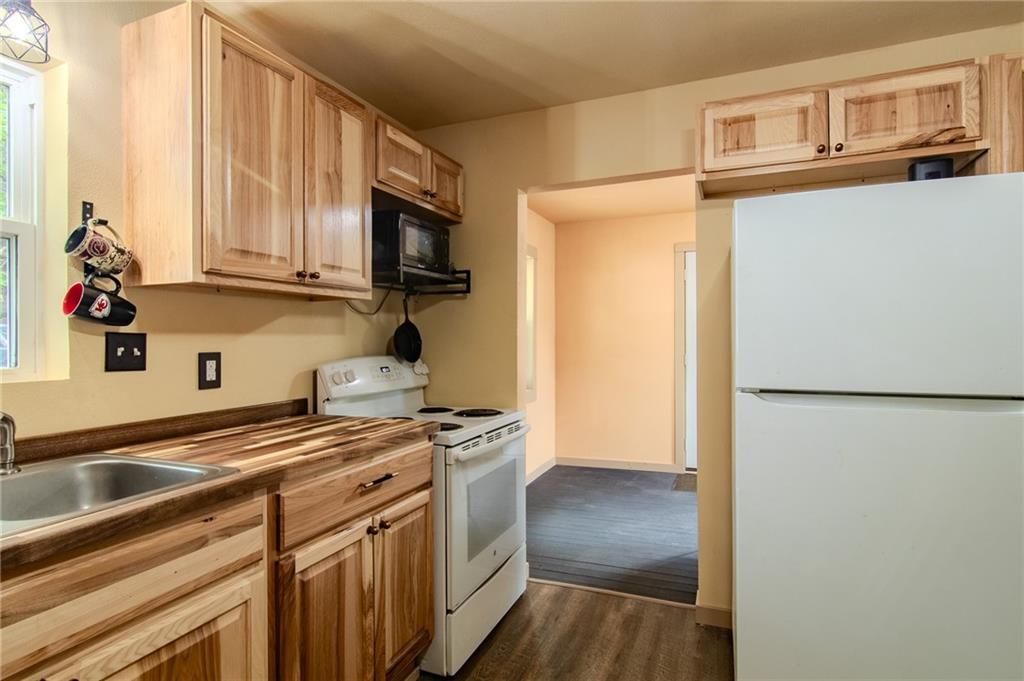 This 2-bedroom, 1-bath home offers an additional lofted space that could easily serve as a third bedroom, office, or playroom, complete with storage and a window for natural light. The living room features a vaulted ceiling and new carpet, creating an open and inviting feel. The kitchen has been fully updated with new cabinetry, butcher block countertops, modern hardware, and new light fixtures. One bedroom showcases shiplap accent walls for added character, while the bathroom includes upgraded finishes. A new gas furnace has been installed, with the option to add central air if desired, though the window units have been keeping up well through the summer heat. The newly finished mudroom provides generous storage and opens to a backyard concrete patio with a firepit just at the edge, perfect for entertaining this fall! Major updates have been completed, with the roof, water heater, windows, and doors all replaced in 2021. The rest of the home has been carefully renovated over the past two years, including new drywall, trim work, interior paint, and fresh exterior siding and trim. Located in a well-established neighborhood that is seeing exciting revitalization, this home combines historic charm with modern updates at an affordable price.