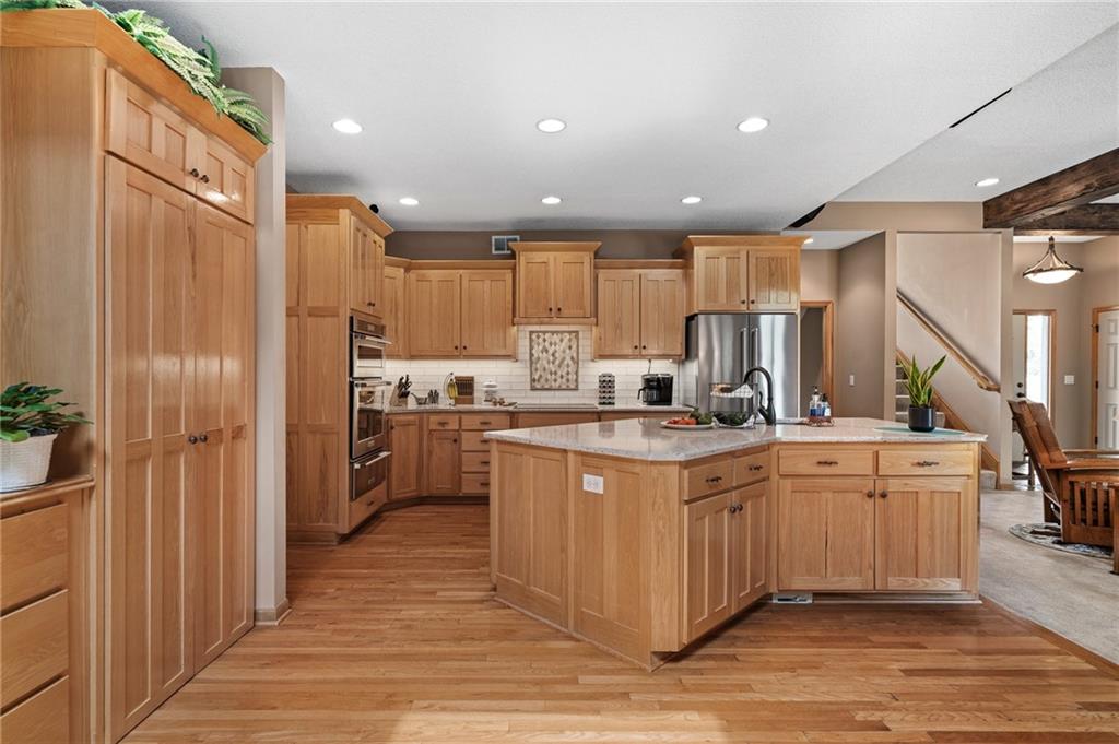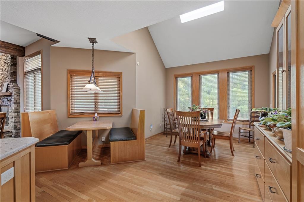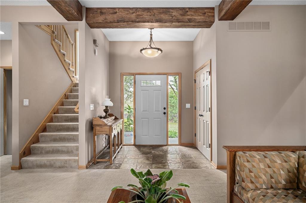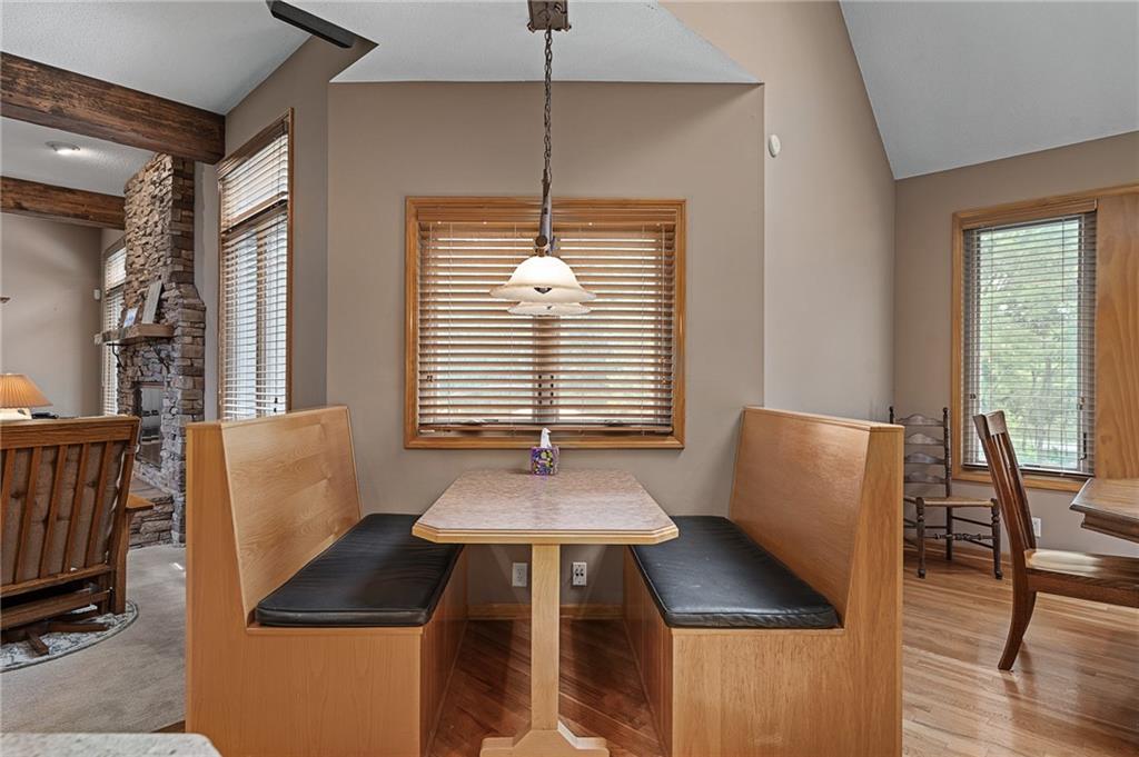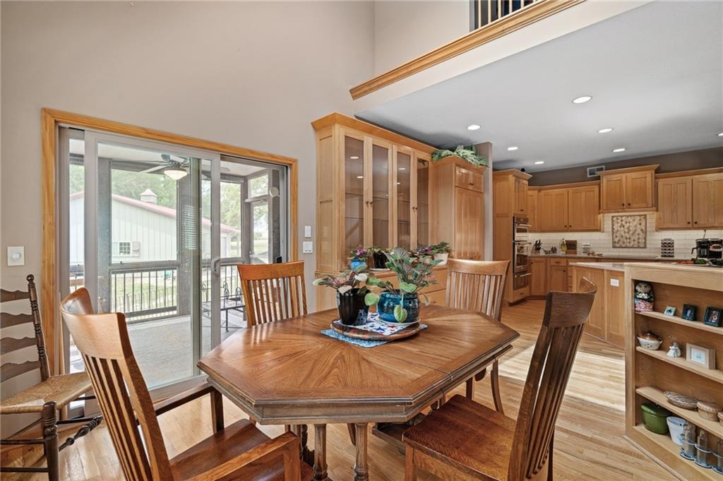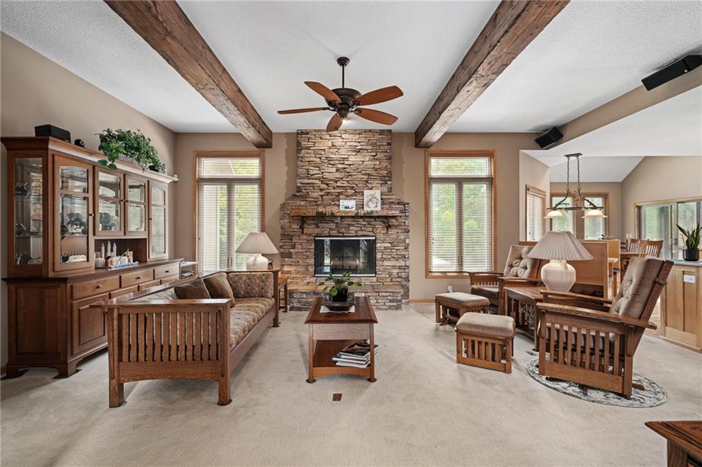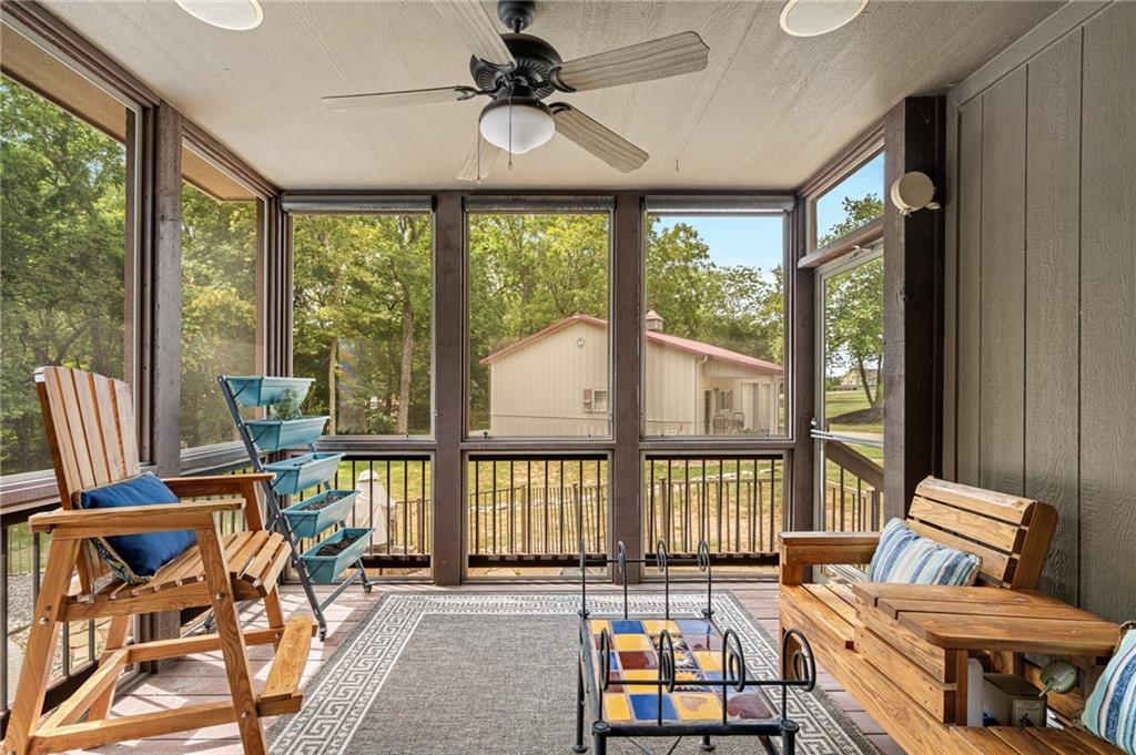 This stunning 1.5-Story custom-built Lodge-Style home offers 4 bedrooms, 2.5 baths, an open floor plan, all set on 3 acres w/the ultimate country lifestyle. A 2 minute walk finds you fishing or kayaking the 2.5-acre community pond stocked with multiple fishes.The home overlooks scenic woods where wildlife abounds. Car lovers and hobbyists will appreciate the incredible 45x29 Morton Bldg (SHOP) just across the driveway.The 2 garage bays here give you a total of 5 bays. BONUS -behind the SHOP is a 42x12 RV pad w/30 AMP service.Turning to the inside, a rustic elegance awaits you w/natural pecan flooring and woodwork. You'll be greeted immediately to a beautiful dry-stacked stone wood burning fireplace with a one of a kind, hand-carved mantle. The Great Room features 10’ ceilings w/massive hand-hewn beams.The kitchen will impress with all high-end appliances and large quartz center island. You won't believe the 10x6 pantry. Enjoy the custom "Cafe Booth" for that quick breakfast. The custom built-in hutch will astonish you.The laundry room has an oversized stainless steel sink/built-in ironing board and folding counter. The primary suite includes a daylight-lit walk-in closet and built-in desk. Upstairs a 19x10 loft is perfect for a home office. Also find 2 bedrooms and a 22x20 bonus room/bedroom. The daylight walkout basement (9’ ceilings) is stubbed for a bathroom. Here you'll find a "Safe Room". Step outside your screened in porch overlooking the pool to your personal oasis:a large in-ground swimming pool & massive deck along with a custom built critter-proof garden. Timber Trace Ranch is home to just 62 residences, carefully designed for privacy & a strong connection to nature. Hillsdale Lake and State Park is just one mile away. You’ll enjoy fishing, boating, kayaking, jet skiing, camping, with a sandy public beach.This is privacy in the country at its best—all while being minutes from urban conveniences. Don’t miss your chance to tour this extraordinary home today!