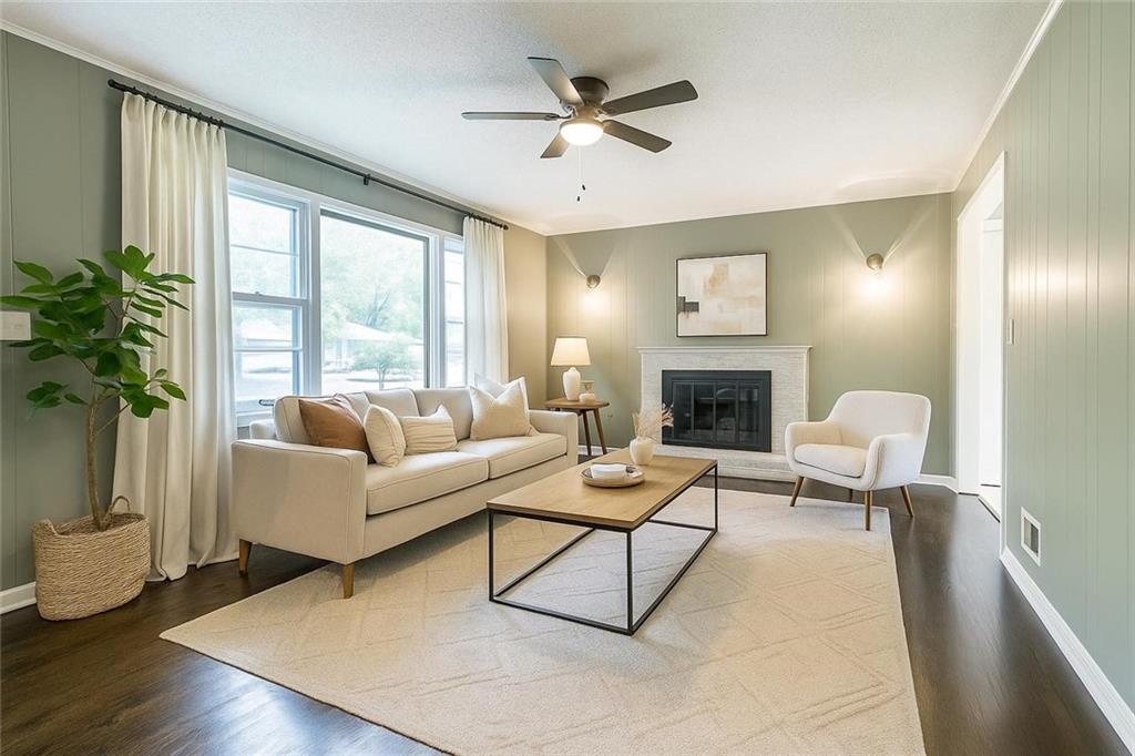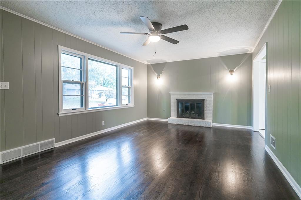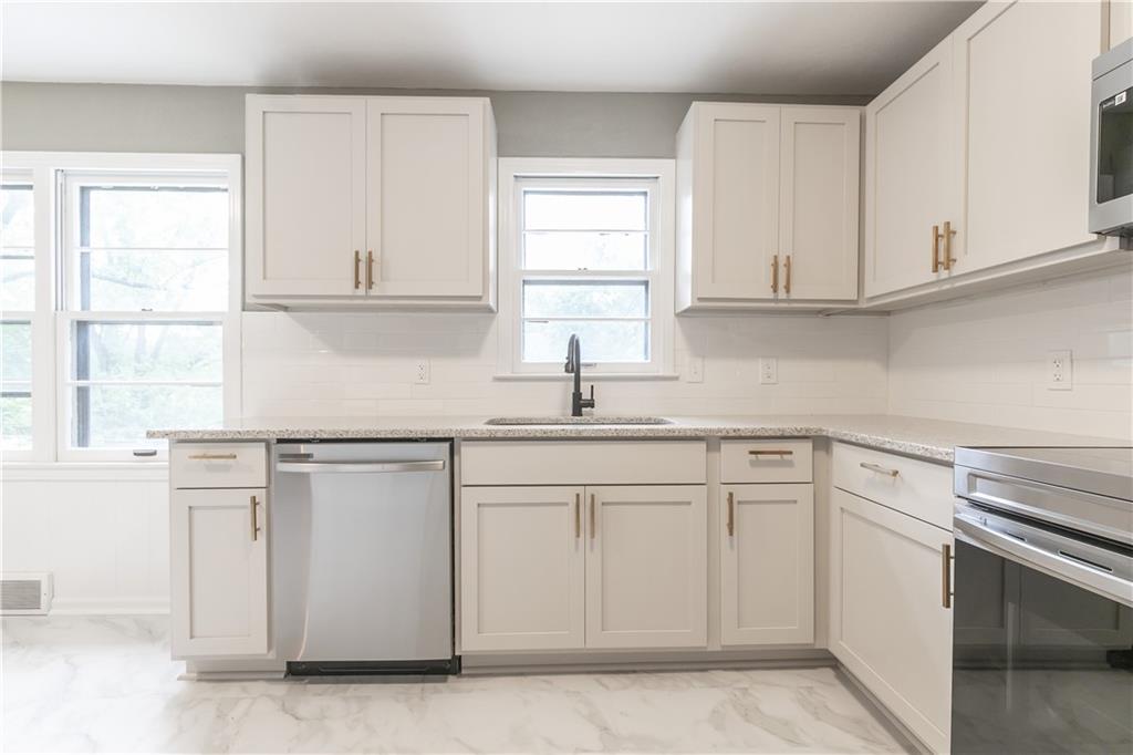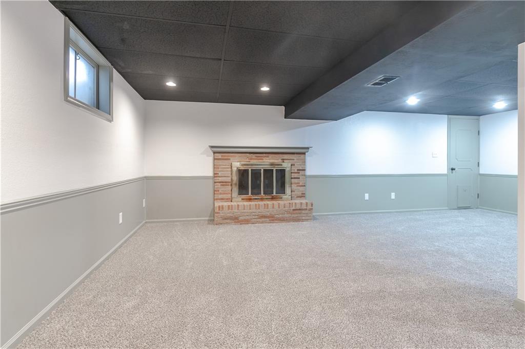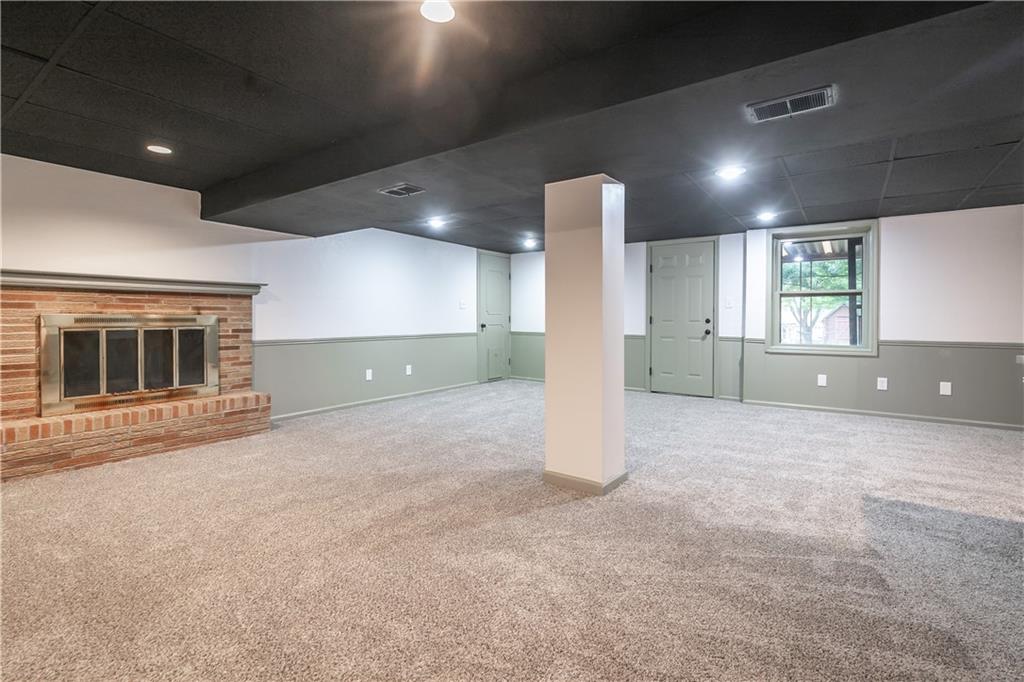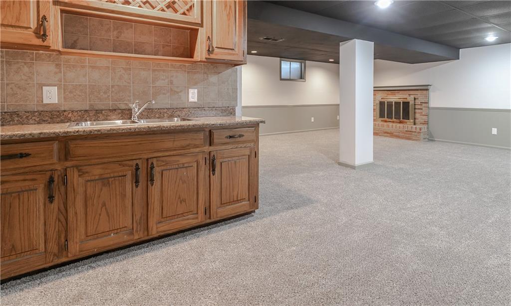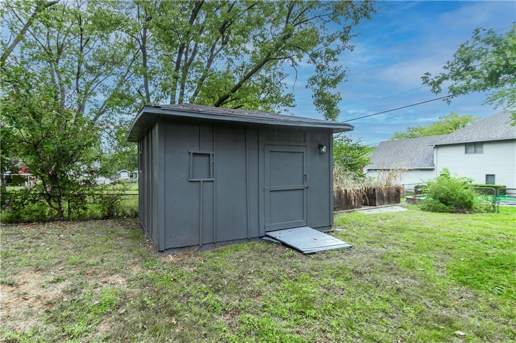 Welcome to this beautifully remodeled 3 bedroom, 3 bathroom ranch! The main level features refinished hardwood floors, a brand new kitchen with custom cabinets, granite countertops and a pantry, a cozy living room with a fireplace, three bedrooms including a primary suite with private bath, and an additional full hall bath. A convenient two car garage completes the main level. The finished walkout basement offers a spacious family room, featuring a fireplace, a wet bar, a third full bathroom, laundry area, and plenty of storage. Step outside to enjoy the covered patio overlooking the fenced backyard. The yard also includes a large shed with electricity, perfect for a workshop or extra storage. With thoughtful updates throughout and plenty of space indoors and out, this home is truly move in ready!