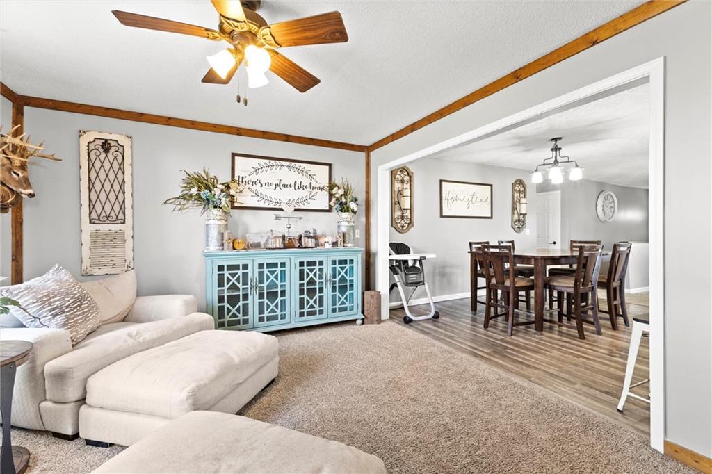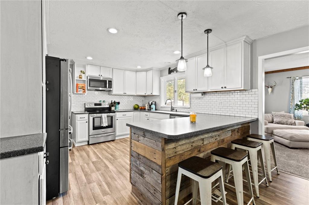 Have your cake and eat it too—country living with modern comfort!This charming, updated ranch sits on 3.4 peaceful acres with a fenced-in yard, a 2-car attached garage, and a barn with three additional garage bays—perfect for hobbies, projects, or extra storage. Bring your chickens to the coop, cast a line in the shared pond, or simply relax and take in the open views. Inside, the open-concept floor plan offers true main-level living with an inviting flow between living, dining, and kitchen spaces. The spacious primary suite features an updated ensuite bath and laundry tucked conveniently in the closet. With maintenance-free vinyl siding, easy highway access, and plenty of room to spread out, this property blends the best of both worlds—a cute updated ranch and your own slice of acreage.