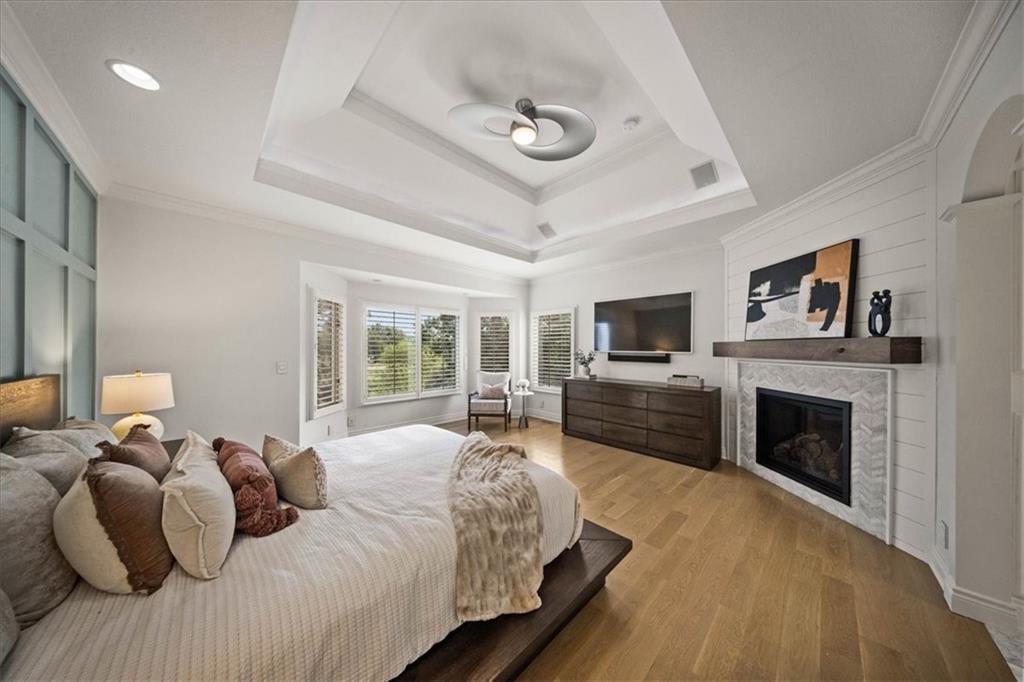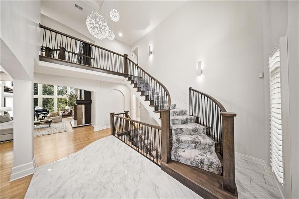 Priced below appraised value! Luxury Living in Falcon Ridge – A Private, One-of-a-Kind Retreat. Welcome to luxury living redefined in this extraordinary 6,300 sq. ft. estate nestled on a private, wooded cul-de-sac in the sought-after Falcon Ridge community. Perched among the treetops with no rear neighbors and breathtaking views of the Falcon Ridge Golf Course and a tranquil water feature, this residence offers unmatched privacy, serenity, and sophistication. Blending Mediterranean architectural charm with refined modern design, the home showcases over $450,000 in recent upgrades, including a chef-inspired gourmet kitchen with custom dovetail soft-close cabinetry, full-size Sub-Zero refrigerator and freezer, quartzite countertops, Cove dishwasher, backsplash and designer ambient lighting. The rare two-tiered lower level boasts soaring ceilings, a home office, expansive recreational space, a climate-controlled room prepped for a 10-person hot tub, and a secret door leading to a hidden storage room—perfect for seasonal decor or valuables. A $40,000 indoor playroom and thoughtfully designed laundry room on main level with built-in pet crates add functionality for the modern lifestyle. No detail has been overlooked—from Hunter Douglas window treatments, rich hardwood floors, custom curved staircase, new carpeting, Legrand smart outlets, whole-home audio, state-of-the-art electronics, water softener, and a premium RO water system. Outdoors, step into meticulously manicured English-style tiered gardens with curated perennials, mature trees, shrubs, flagstone hardscapes, and a charming gazebo—perfect for garden parties or peaceful mornings. The show-stopping screened-in porch features low-maintenance Trex decking, a cozy stone fireplace, a full outdoor kitchen, and generous seating for intimate evenings under the stars. This is not just a home—it's a luxurious private sanctuary, perfectly tailored for entertaining, relaxing, and creating unforgettable memories.