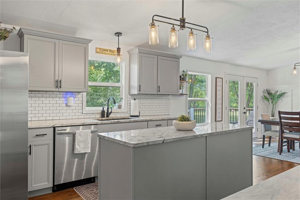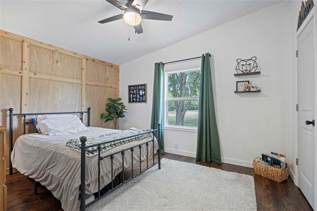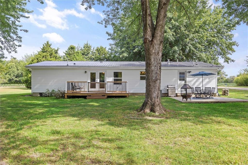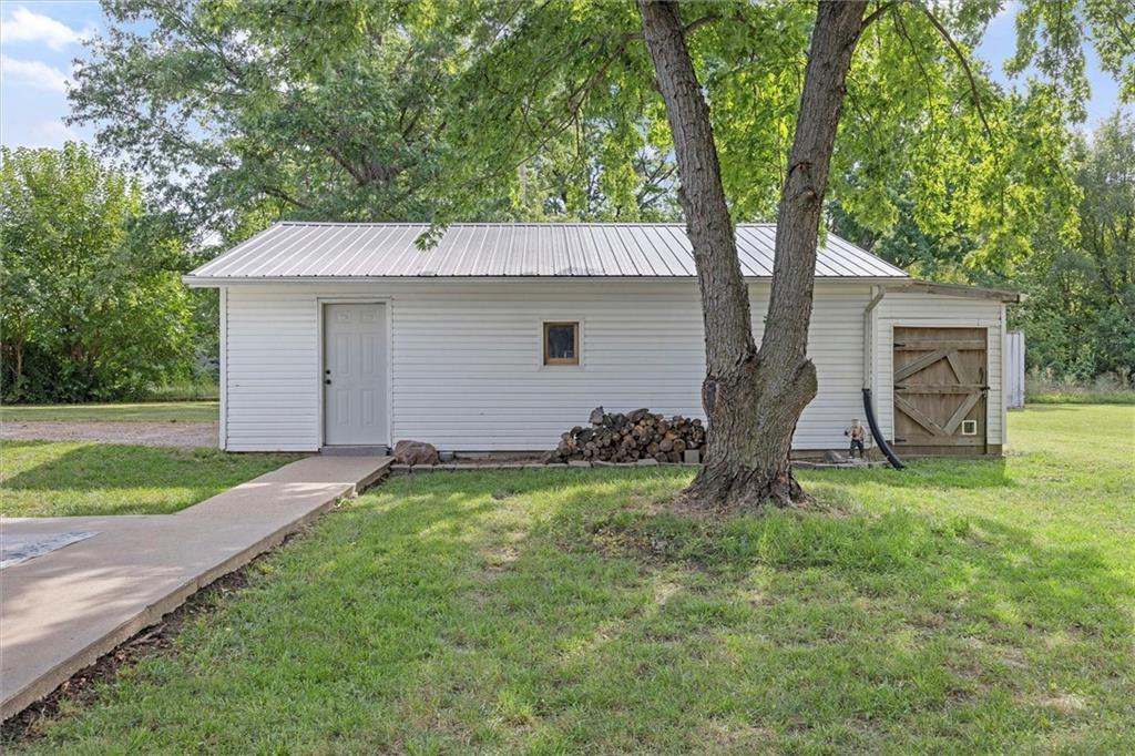 Modern touches combined with country tranquil living best describes this renovated magazine picture perfect home. Nothing left untouched on this 4 bedroom 2 bathroom main floor living home. A beautifully well thought out kitchen offers a large island, plenty of cabinetry, granite countertops, kettle faucet, subway tile and stainless steel/black appliances. A nice dining area provides space for a large table and chairs that is accented with wainscoting and a beautiful light fixture. The nice open floor plan leads you into the living room area big enough for oversized furniture and plenty of daylight with nice size windows. The primary bedroom is spacious and detailed with a faux brick accent wall and unique ceiling fan along with it's own on suite bathroom and walk in closet. The secondary and third bedroom are also large spaces both offering ceiling fans and walk in closets. A fourth bedroom is ideal for a nursery, office, playroom, or reading den. Throughout the home are beautiful wood laminate flooring. The exterior of the home offers modern farmhouse curb appeal with black metal roofs, white siding and cedar shutters. Positioned on nearly an acre secluded with tree lines offers a country feel. The home offers both a deck and two patios along with a sidewalk leading to a 30x24 detach garage/shop with bonus shed attached. A storage container is staying with the property that could be used for more storage or an extra space depending on your imagination. Located in the Basehor-Linwood school district and close to amenities. Schedule a showing before this one slips away!