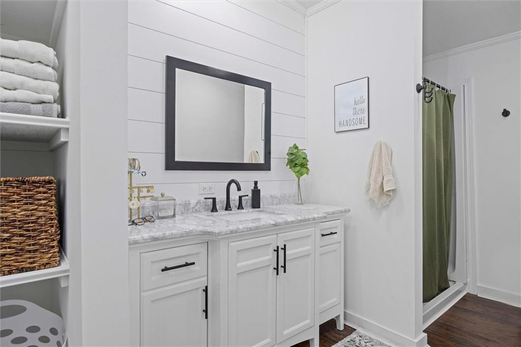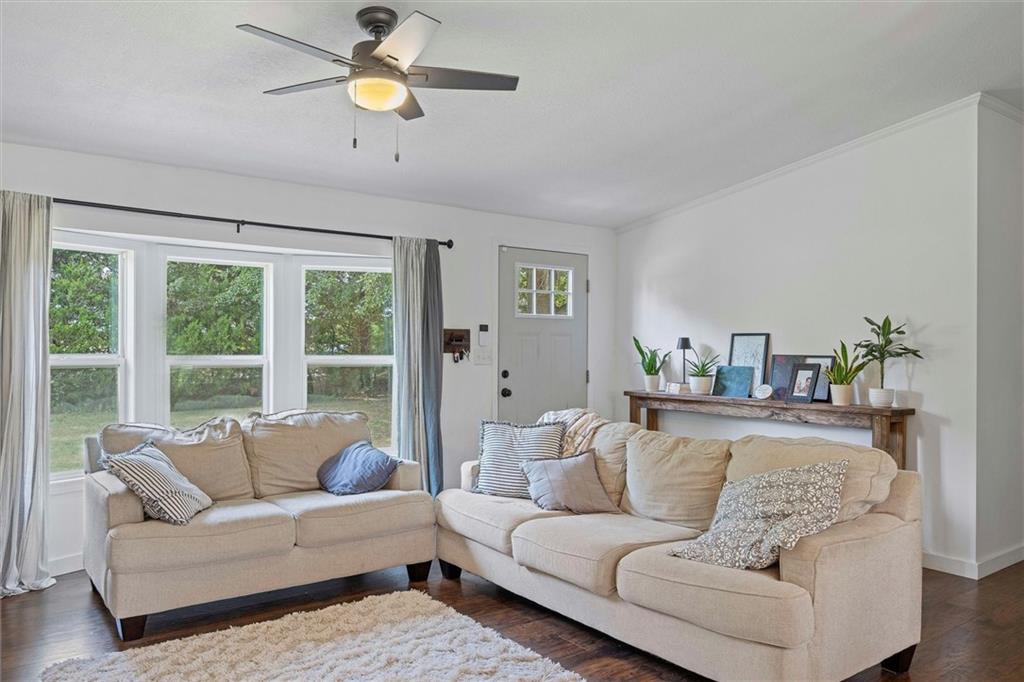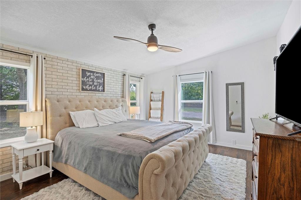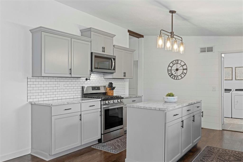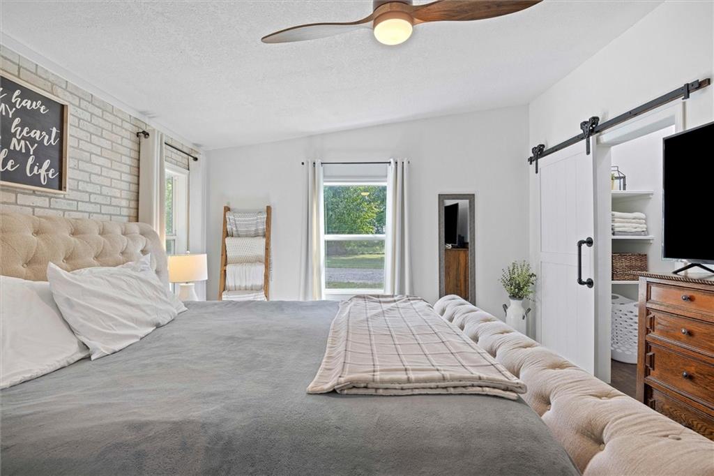 Modern touches combined with country tranquil living best describes this renovated magazine picture perfect home. Nothing left untouched on this 4 bedroom 2 bathroom main floor living home. A beautifully well thought out kitchen offers a large island, plenty of cabinetry, granite countertops, kettle faucet, subway tile and stainless steel/black appliances. A nice dining area provides space for a large table and chairs that is accented with wainscoting and a beautiful light fixture. The nice open floor plan leads you into the living room area big enough for oversized furniture and plenty of daylight with nice size windows. The primary bedroom is spacious and detailed with a faux brick accent wall and unique ceiling fan along with it's own on suite bathroom and walk in closet. The secondary and third bedroom are also large spaces both offering ceiling fans and walk in closets. A fourth bedroom is ideal for a nursery, office, playroom, or reading den. Throughout the home are beautiful wood laminate flooring. The exterior of the home offers modern farmhouse curb appeal with black metal roofs, white siding and cedar shutters. Positioned on nearly an acre secluded with tree lines offers a country feel. The home offers both a deck and two patios along with a sidewalk leading to a 30x24 detach garage/shop with bonus shed attached. A storage container is staying with the property that could be used for more storage or an extra space depending on your imagination. Located in the Basehor-Linwood school district and close to amenities. Schedule a showing before this one slips away!