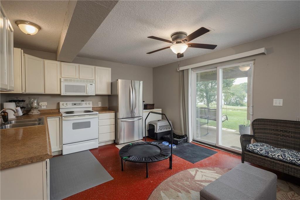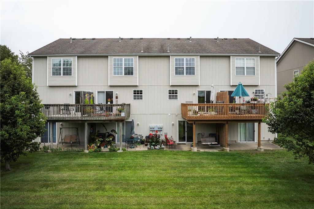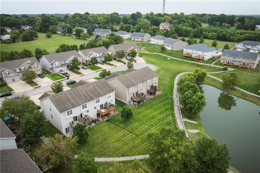 This exceptional home boasts a wonderful layout and a wealth of features to suit your lifestyle! With ample space for you'll love the large multi-generational area in basement with kitchenette and bath. The home includes 2 bedrooms, plus a non-conforming 3rd room in the lower level walk-out patio with water view. The master bedroom offers generous closet space, while the 2nd bedroom is equally spacious with a large closet. Conveniently, the laundry room is located on the bedroom level. The kitchen comes equipped with stainless steel appliances, which will remain with the property. Shadow Glen isn't just a subdivision; it’s a lifestyle! Enjoy fantastic community amenities including a pool, exercise room, walking trails, play area, and pond. The HOA takes care of the exterior maintenance (roof, siding, decks, concrete), lawn care, trash removal, and water for the sprinkler system, allowing you to relax and enjoy all that the community has to offer. Recent upgrades include new flooring in the living room and kitchen. Enjoy stunning views from all three levels of this home, overlooking the lush green space and serene pond. Plus, you're just a short walk away from the community pool! Located in the highly desirable Blue Springs School District, this home is conveniently situated near shopping, restaurants, and parks. Don’t miss this opportunity to enhance your lifestyle in Shadow Glen!