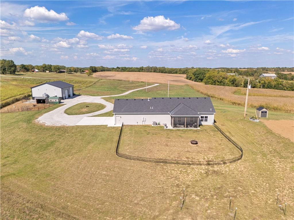 Country Living at Its Finest! Down a long, winding gated drive, you’ll find this exceptional ranch home, less than two years old and crafted with the timeless quality of a Gary Kerns build. Perfectly perched on 10 serene acres, this residence offers the peace and beauty of country living with a touch of refined style. The home’s inviting design pairs modern comfort with rustic charm. An oversized two-car garage doubles as a workshop, while a remarkable 40x48 pole barn—with concrete floors, dual oversized bay doors, electricity (220v), and water—offers endless possibilities for storage, projects, or shelter for your RV, boat, or equipment. The land itself is a true treasure—fully fenced and ready for horses, cattle, or simply room to roam. Established fruit trees, including peach and apple, promise a harvest you’ll enjoy year after year. Gentle rolling acreage creates a picturesque backdrop for outdoor living, whether it’s quiet mornings on the porch or evenings under wide country skies.A rare opportunity to combine elegance, comfort, and function, this property is more than a home—it’s a lifestyle. Come experience the unmatched tranquility and possibilities of this country retreat.
