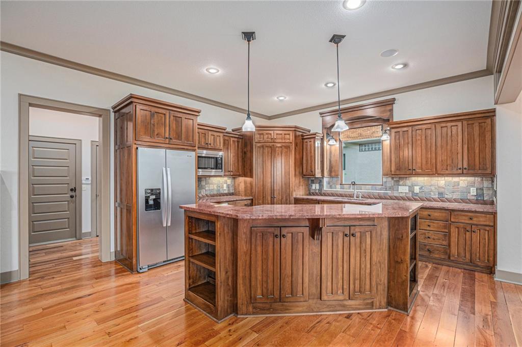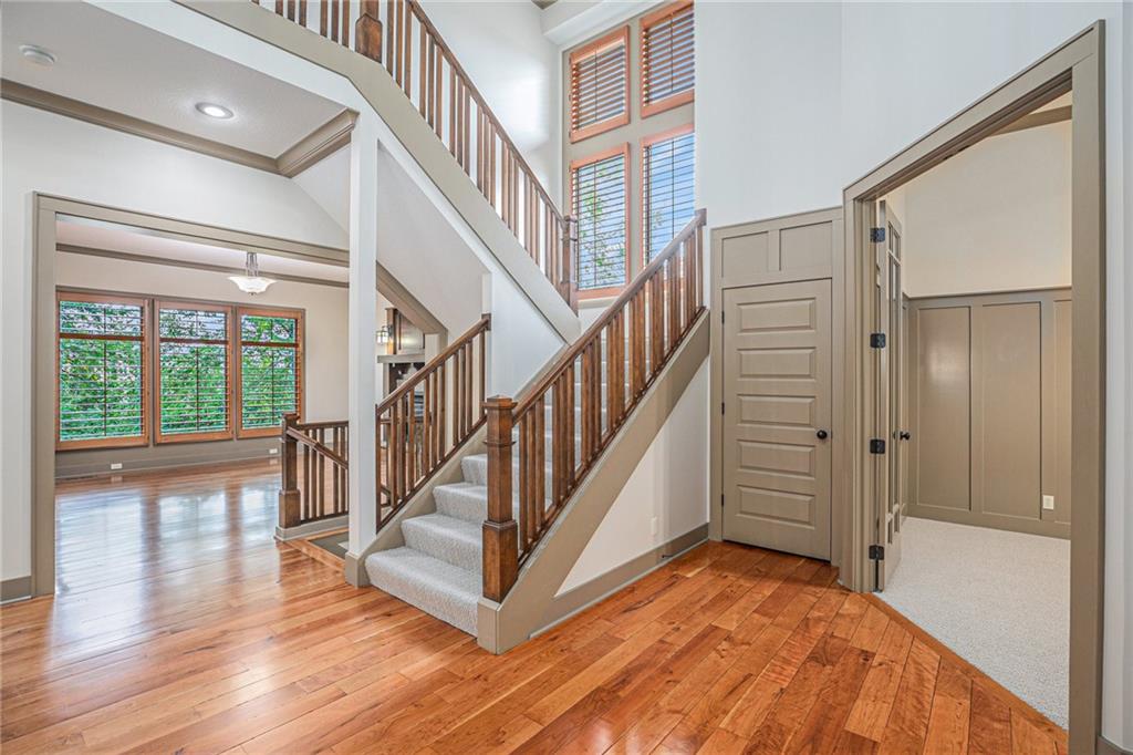 This five-bedroom, two-story Craftsman with a timeless Spanish tile roof blends classic character with modern comfort in one of Lenexa’s most desirable neighborhoods—Canyon Creek by the Park. With just one owner, this home has been lovingly maintained and beautifully refreshed with new paint, new carpet, and refinished hardwood floors. A beautifully landscaped walkway leads to the front entry, where you’ll be welcomed by 12-foot ceilings, wainscoting, and built-ins that highlight the craftsmanship throughout. The heart of the home is the spacious kitchen, complete with a hearth room and an oversized eat-in area—large enough to host holiday gatherings or entertain with ease. This space flows seamlessly onto the 1-year-old composite deck, which overlooks a professionally landscaped backyard featuring a retaining wall and rock bed garden. Upstairs, you’ll find four bedrooms, including a primary suite with a bright sitting room, perfect for unwinding or enjoying morning light. The finished walkout basement expands your living space with a family room, wet bar, and an additional bedroom—a perfect setup for game days, movie nights, or hosting guests. All mechanicals are under 5 years old, and the exterior has been freshly painted, ensuring peace of mind for years to come. This one-owner Craftsman masterpiece offers luxury, space, and lifestyle in a quiet Lenexa neighborhood with easy access to K-10 and a convenient commute to wherever your day takes you.