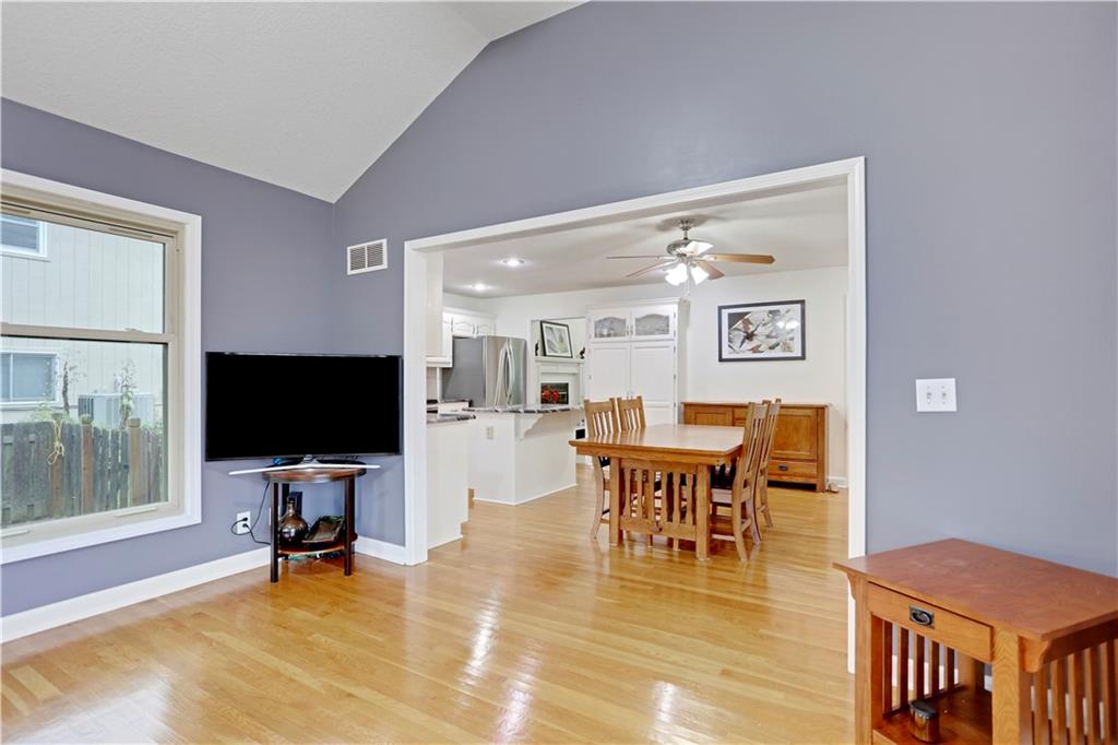A well kept and spacious 1.5 story home that blends comfort, function, and charm. Step inside the inviting living room, where vaulted ceilings and a cozy fireplace create the perfect space for relaxing evenings or gathering with loved ones. The heart of the home is the kitchen designed with plenty of counter space so you can cook meals with ease. All kitchen appliances are included with the home. Enjoy both a dedicated dining room that could also serve as a home office, and a bright eat in kitchen for everyday dining. Upstairs and on the main level, you’ll find generous-sized bedrooms, including a primary suite large enough to accommodate a king sized bed. The primary bathroom offers a true retreat with a soaking tub, separate shower, double vanity, and a spacious walk in closet. The finished basement provides an ideal spot for movie nights, game days, or entertaining family and friends. Outside, the large fenced backyard offers a private escape perfect for sipping your morning coffee on the patio or hosting a summer barbecue. This home has been lovingly maintained and offers the space, flexibility, and comfort you’ve been looking for.