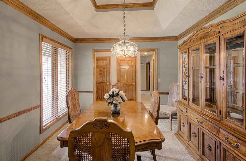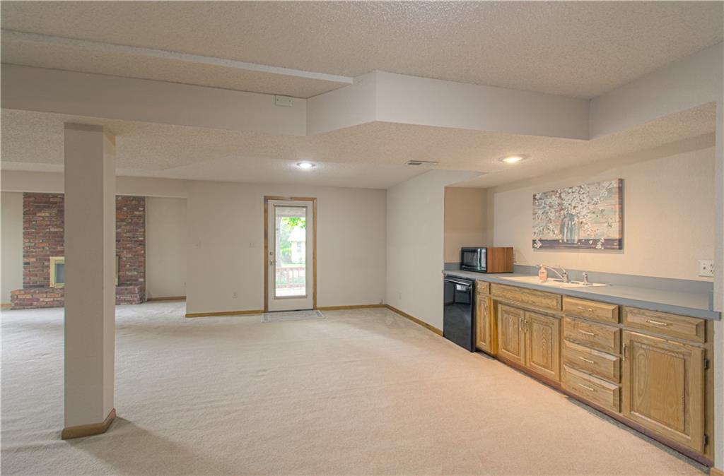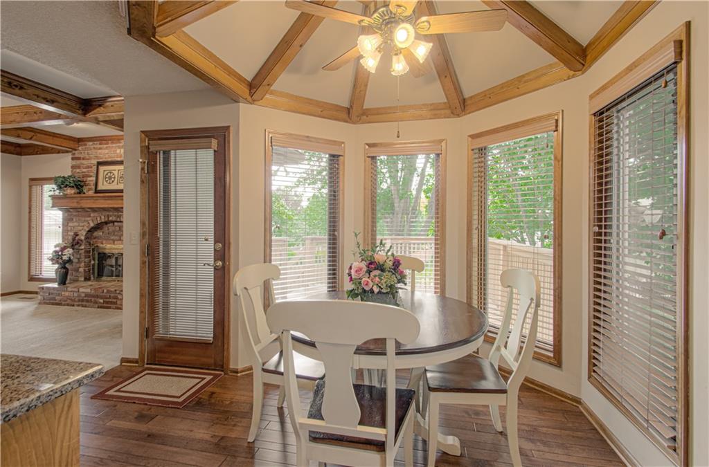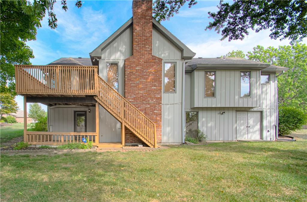 Well-maintained ranch Home, located in Gladstone. This 3-bedroom, 2.5-bath ranch offers comfort and space both inside and out. Step into a bright and inviting home featuring a spacious living room and a cozy fireplace. You will fall in love with this spacious kitchen, featuring a large breakfast nook, hardwood floors, and a nice pantry. Enjoy entertaining in the large formal dining room, perfect for special occasions. All bedrooms and the laundry are located on the main level. The lower level is perfectly finished with a 2nd brick fireplace. Lots of windows for natural lighting. This level walks out to a covered patio, a level yard, and mature trees. Bonus: A deck is located off the kitchen, and a utility garage is situated in the lower level, which has double doors. The exterior features maintenance-free siding with a stone front and nice landscaping.