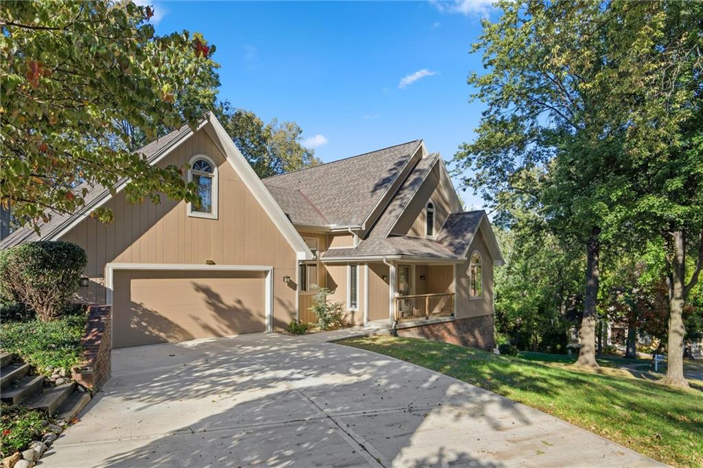 Welcome to this beautifully updated 1.5-story home tucked away on a private cul-de-sac lot in the sought-after Claymont North neighborhood. Surrounded by mature trees and minutes from Briarcliff Village, downtown, and KCI, this residence combines classic charm with thoughtful modern updates. Step inside to find 4 spacious bedrooms, including a finished lower level with egress window and closet, perfect as a guest suite, office, or 4th bedroom. The inviting great room features a new fireplace and full-service chimney, while hardwood floors flow through the main level. The kitchen boasts under-cabinet LED lighting, new oven and dishwasher, and opens to both formal and eat-in dining areas. Retreat to the primary suite with hardwood flooring, walk-in closet, and a spa-like bath with skylight, double vanity, separate shower, and soaking tub. Additional highlights include custom blinds and window treatments throughout, new Pella windows, new carpet, fresh interior paint in select rooms, and a freshly poured garage floor. Entertain indoors or out with ease—enjoy the maintenance-free deck, designer stained and stamped concrete patio, built-in Weber gas grill, and professionally landscaped yard by Rosehill. Recent improvements also include a new roof, exterior siding repairs with fresh paint, new skylight, duct cleaning, and updated exhaust system. This meticulously maintained home offers 3,500+ sq ft of living space with a finished walkout basement, oversized storage areas, and cedar closet. Located in the award-winning North Kansas City School District, this home is move-in ready with every major update already done.